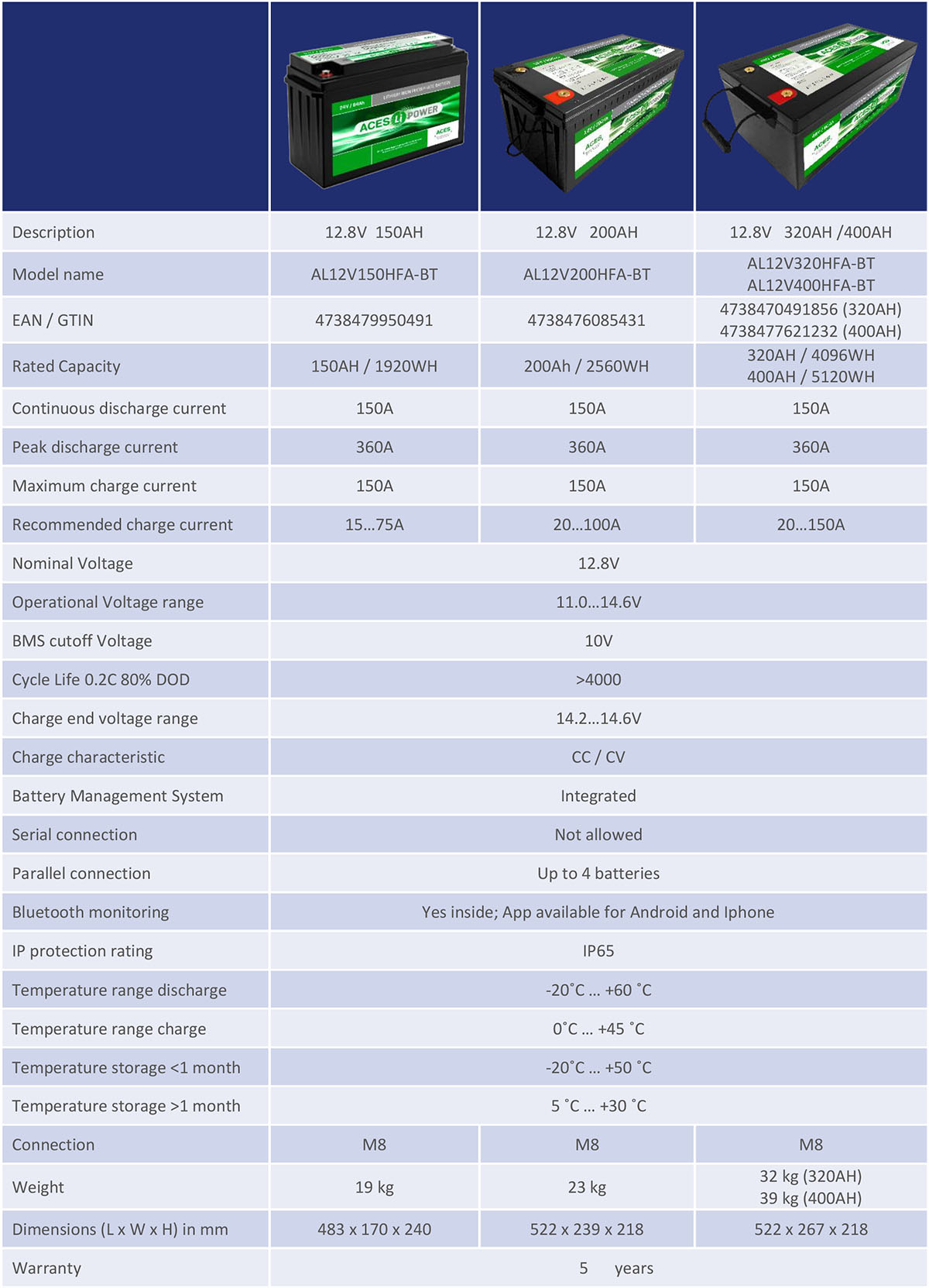 Batería de Litio ACES AL12V200HFA-BT 12.8V 200Ah