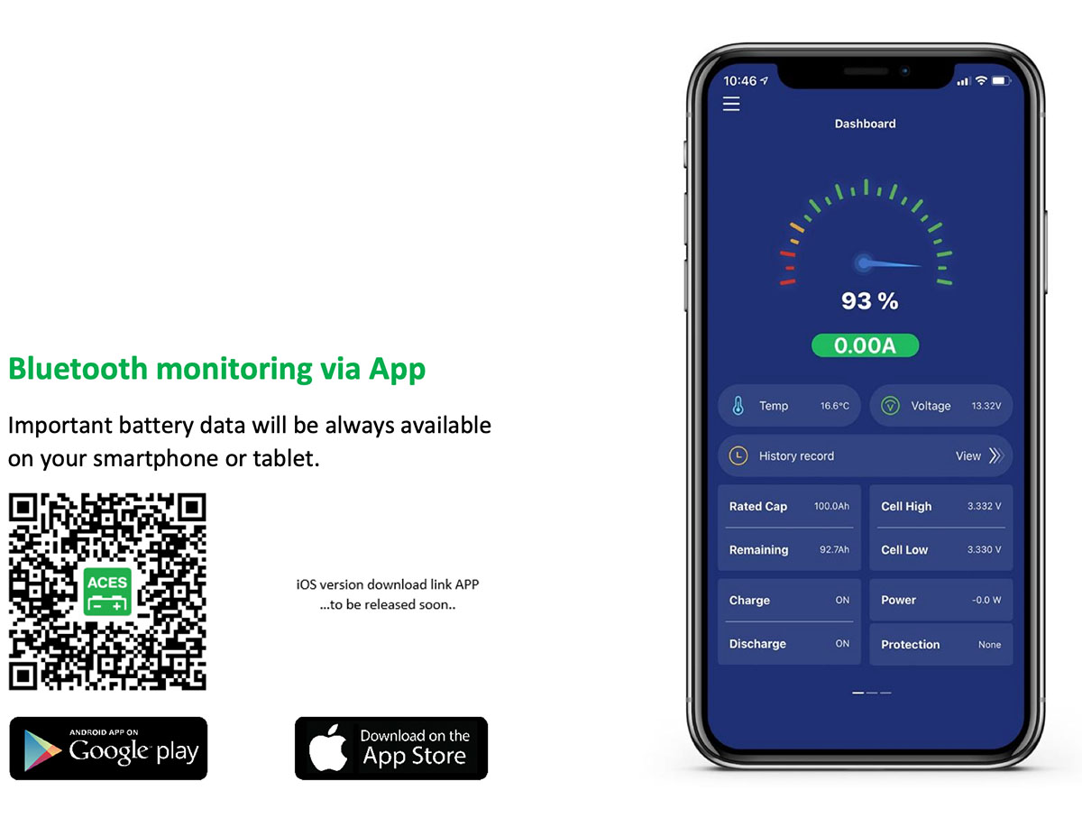 Batería de Litio ACES AL12V200HFA-BT 12.8V 200Ah con BMS y Bluetooth, 2480 Wh