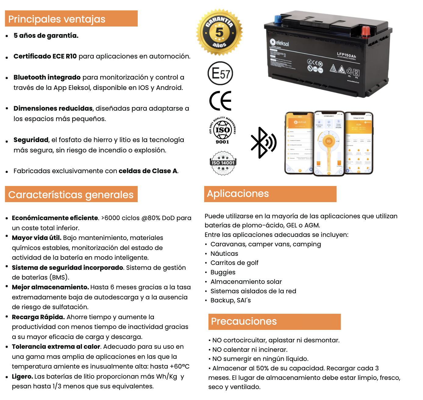 Batería de Litio Eleksol LiFePO4 12,8V 150Ah Bluetooth BMS V2