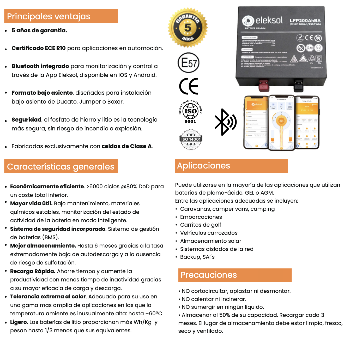 Batería de litio bajo asiento de 12,8V y 200Ah Eleksol LFP4 con Bluetooth y celdas prismáticas de clase A, es la solución de acumulación ideal para autocaravanas y embarcaciones, siendo el top ventas y ofreciendo un rendimiento excepcional.