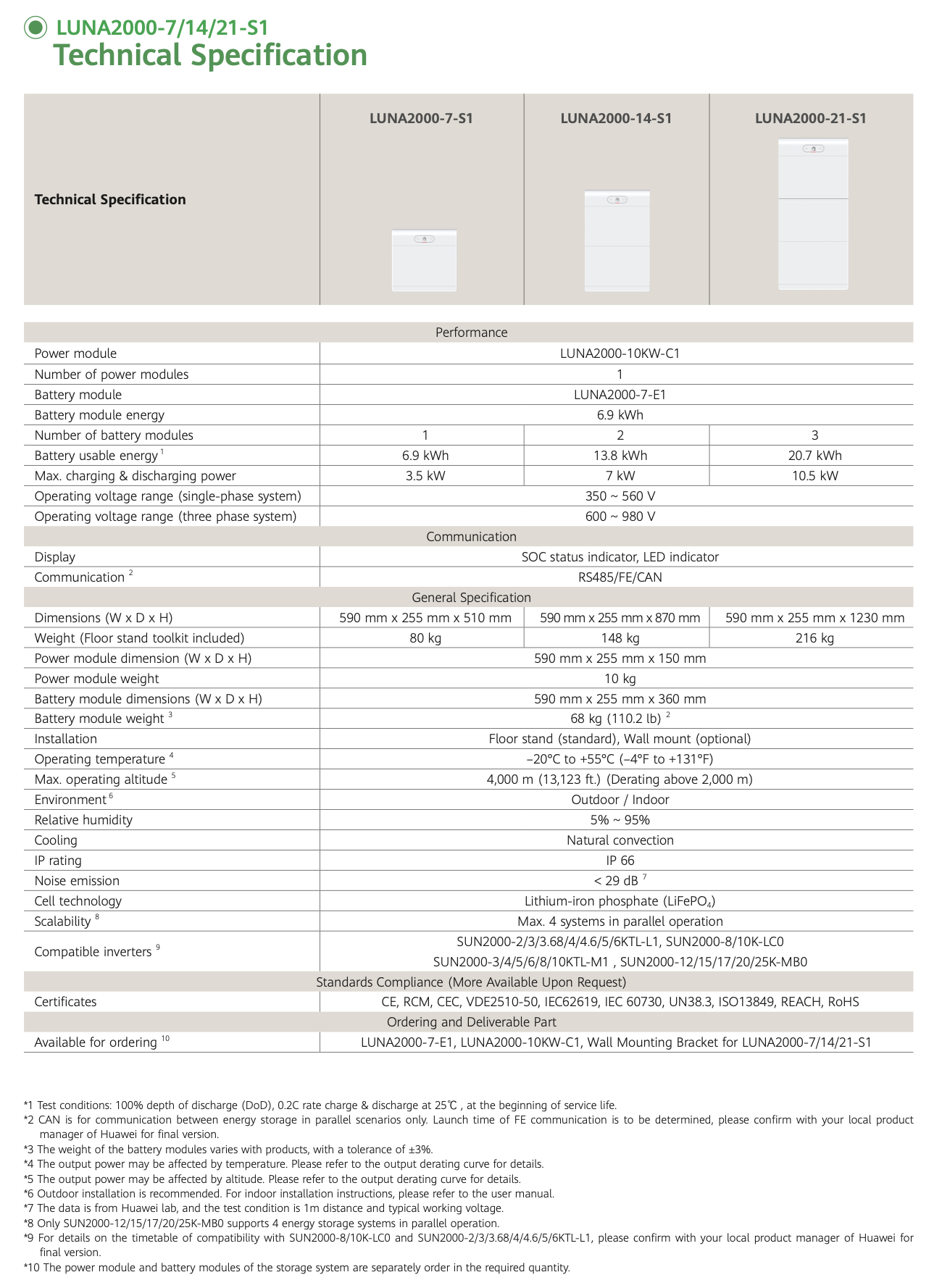 Batería de Litio de alto voltaje Huawei LUNA2000-21-S1 20,7 kWh. Compatible con la gama residencial SUN2000-2~6KTL-L1, SUN2000-8~10K-LC0, SUN2000-3~10KTL-M1 y SUN2000-12~25K-MB0. Escalable hasta cuatro pilas de batería por inversor (con la gama MB0) y hasta 3 inversores con batería por instalación