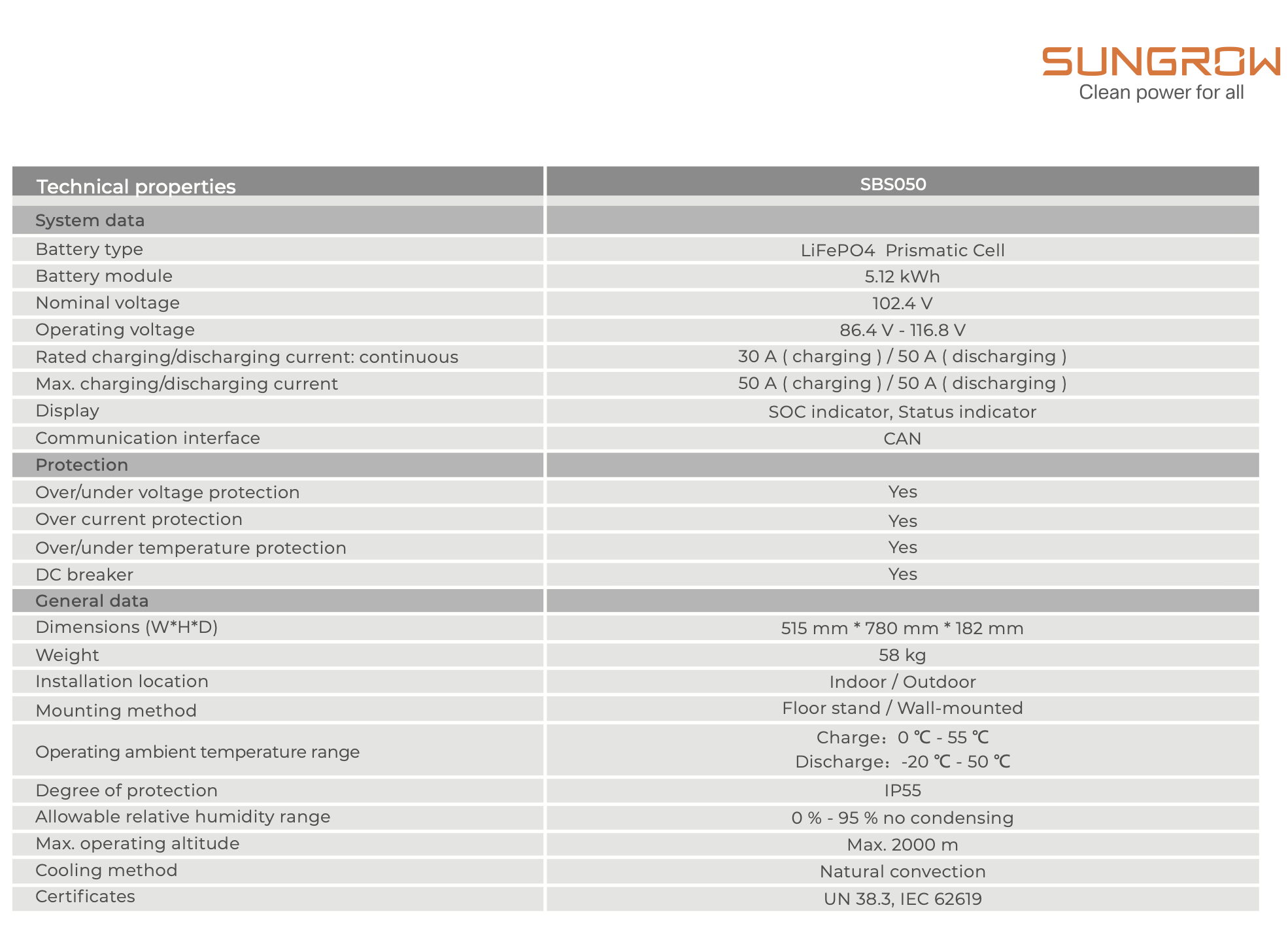 Batería de Litio Sungrow SBS050 5,12 kWh