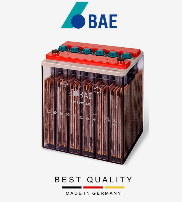 Baterías fabricadas en Alemania desde 1899. BAE es sinónimo de calidad y experiencia en el mercado mundial de las baterías industriales de plomo-ácido en aplicaciones de energías renovables.