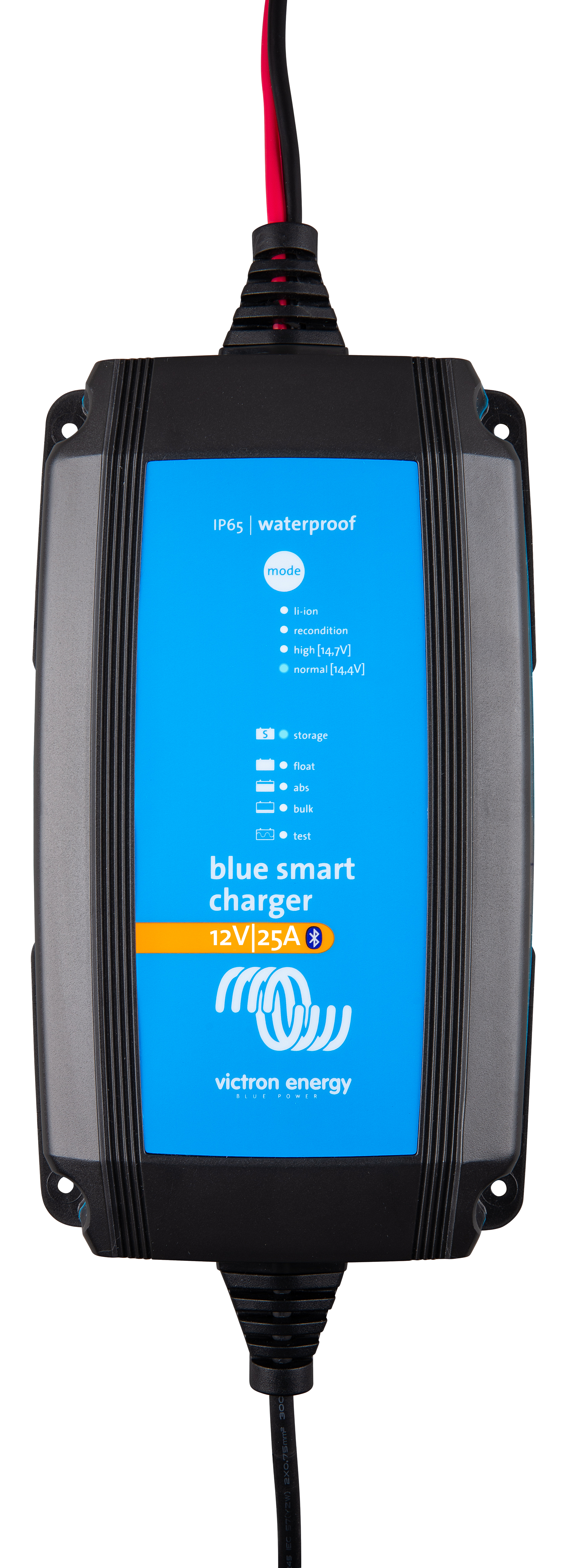 Cargador de Baterías Blue Smart IP65 Bluetooth 12V 25A con Conector DC. El nuevo cargador profesional de Victron Energy con Bluetooth integrado. Esto permite ver la información de su cargador en el teléfono móvil, tablet u ordenador, usando la aplicación VictronConnect.