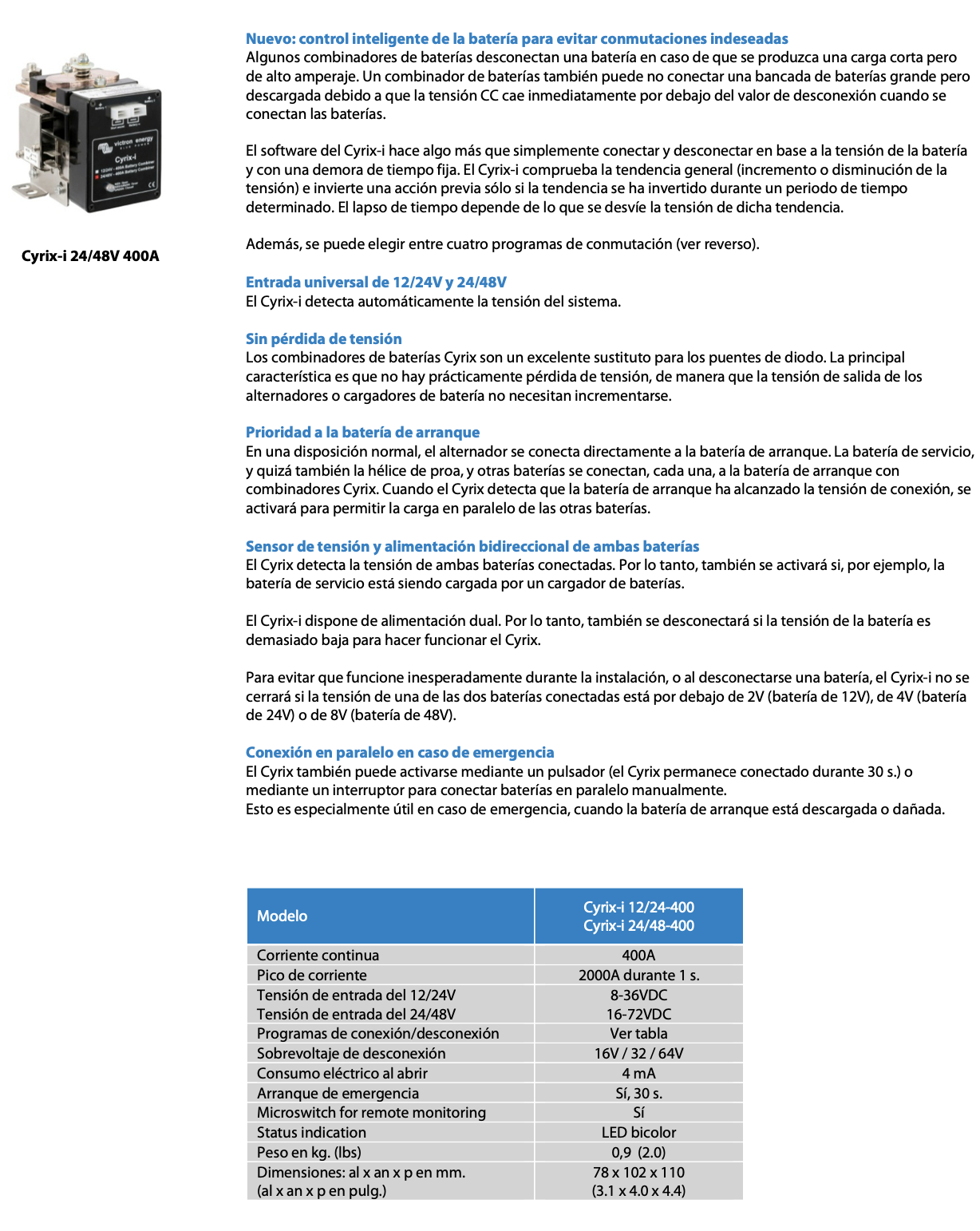 Victron Energy Combinador inteligente de baterías Cyrix-i 400A, de 12/24V y 24/48V