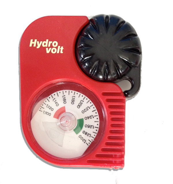 Densímetro de baterías Hydro Volt para medir la densidad del electrolito y el estado de la carga de las baterías.