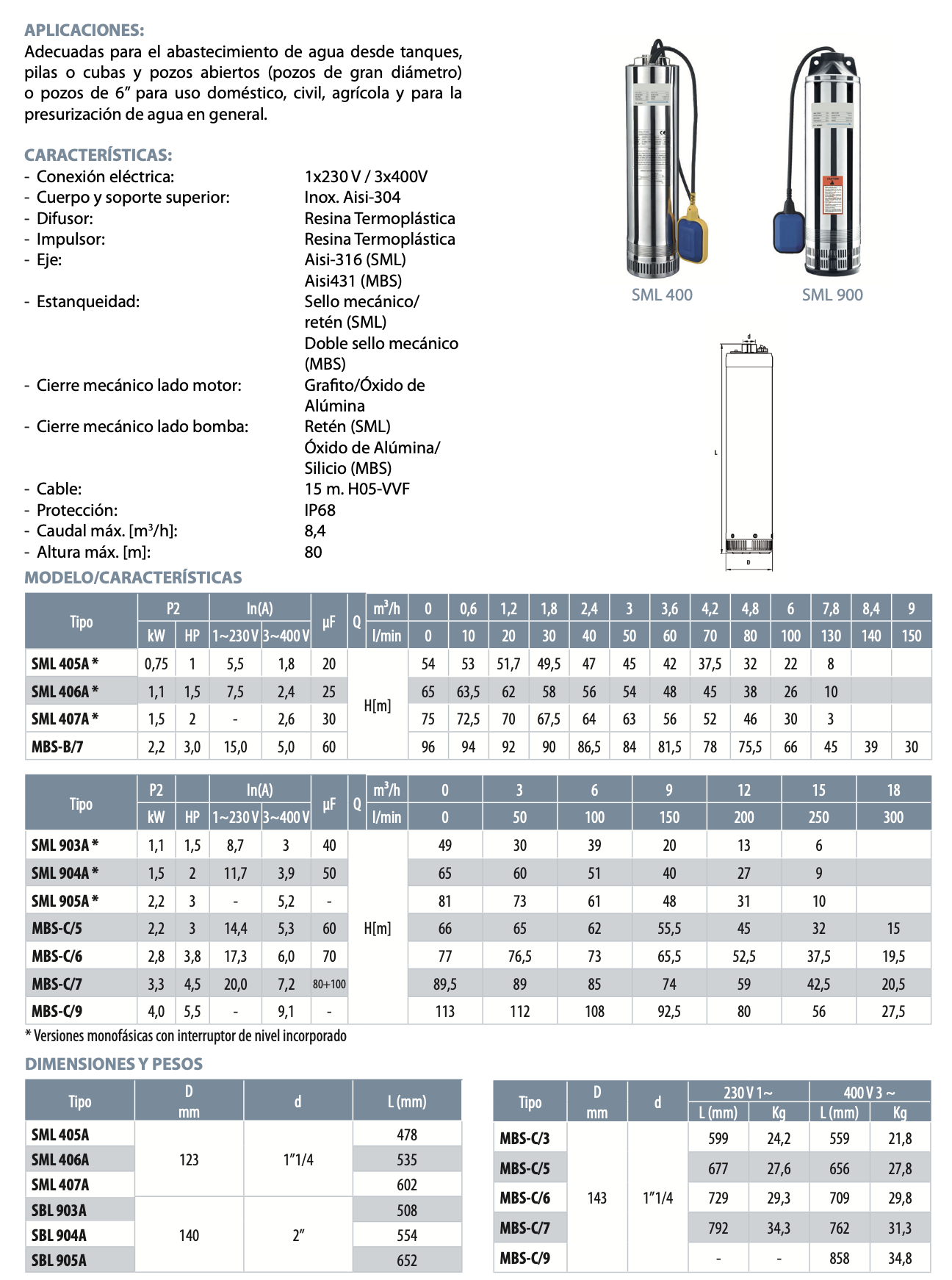 Adecuadas para el abastecimiento de agua desde tanques, pilas o cubas y pozos abiertos (pozos de gran diámetro) o pozos de 5″ o 6″ para uso doméstico, civil, agrícola y para la presurización de agua en general.