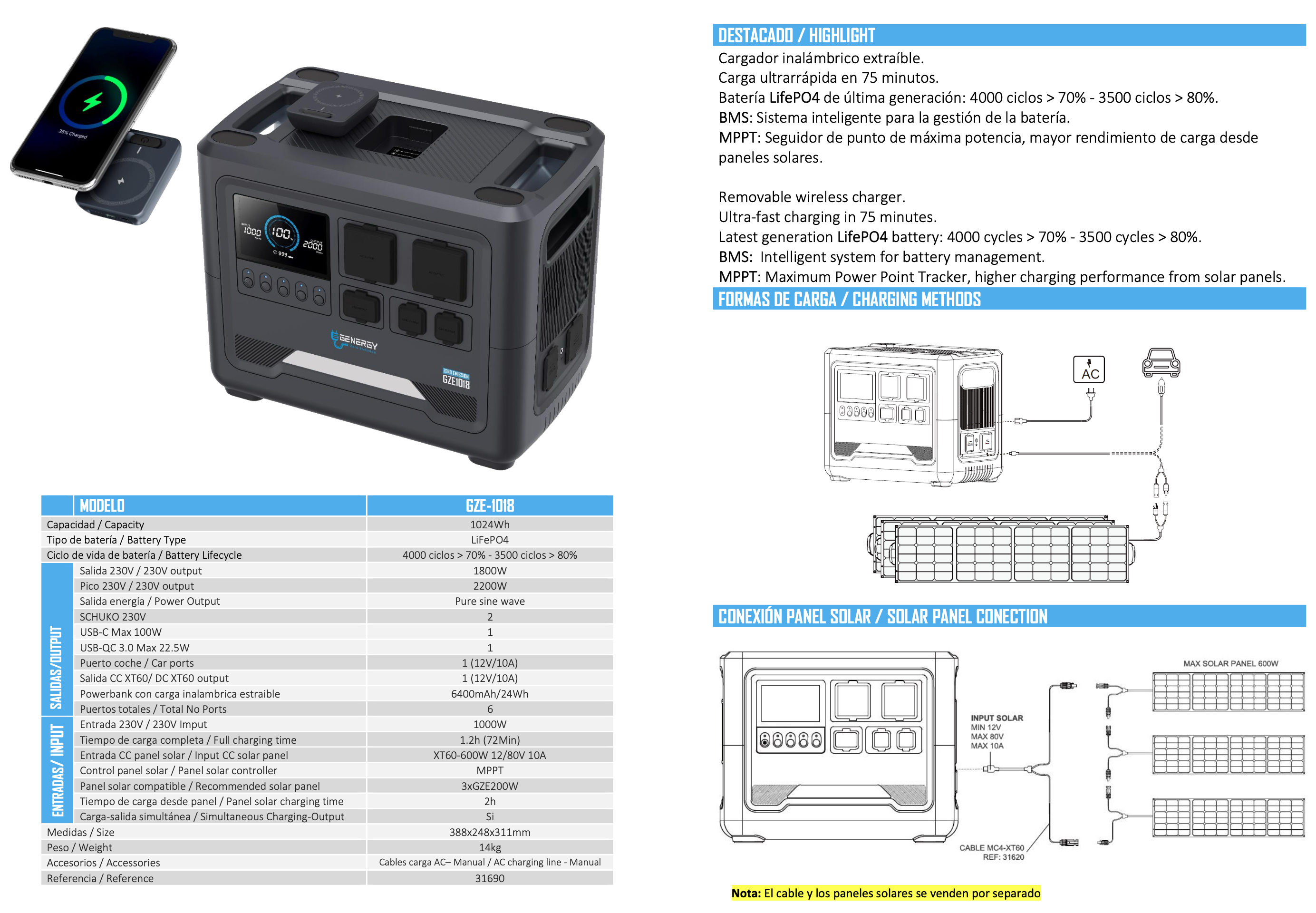 Estación de Energía Genergy GZE-1018 1800W con Batería de Litio 1024Wh