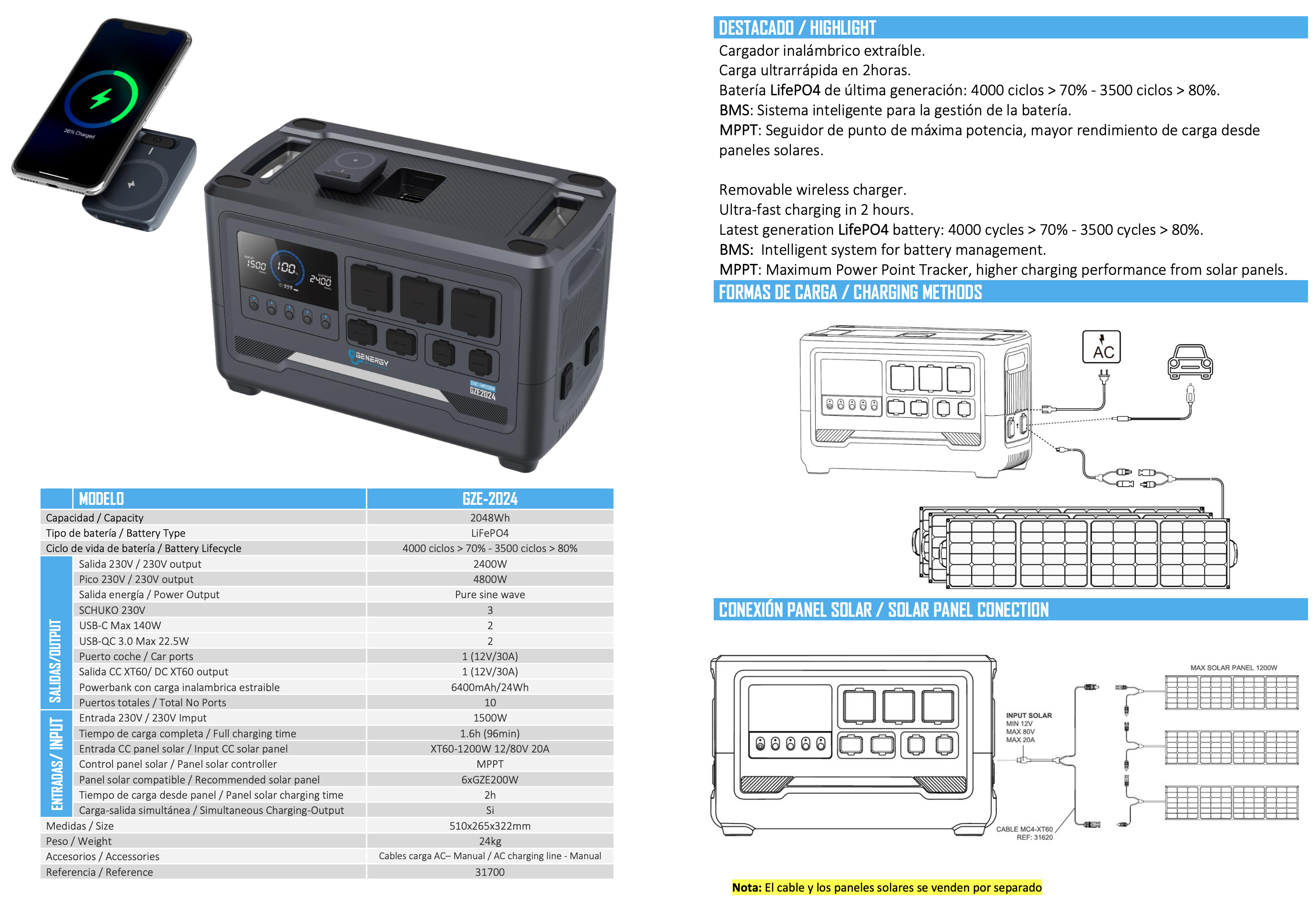 Estación de Energía Genergy GZE-2024 2400W con Batería de Litio 2048Wh