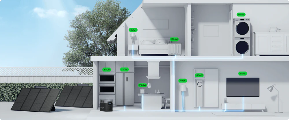 Una generosa capacidad de 2048 Wh hace que el DELTA 2 Max sea ideal para energía de reserva en el hogar y hacer funcionar los equipos esenciales durante horas. Con su diseño ligero, podrá llevarse el DELTA 2 Max en su próxima acampada.