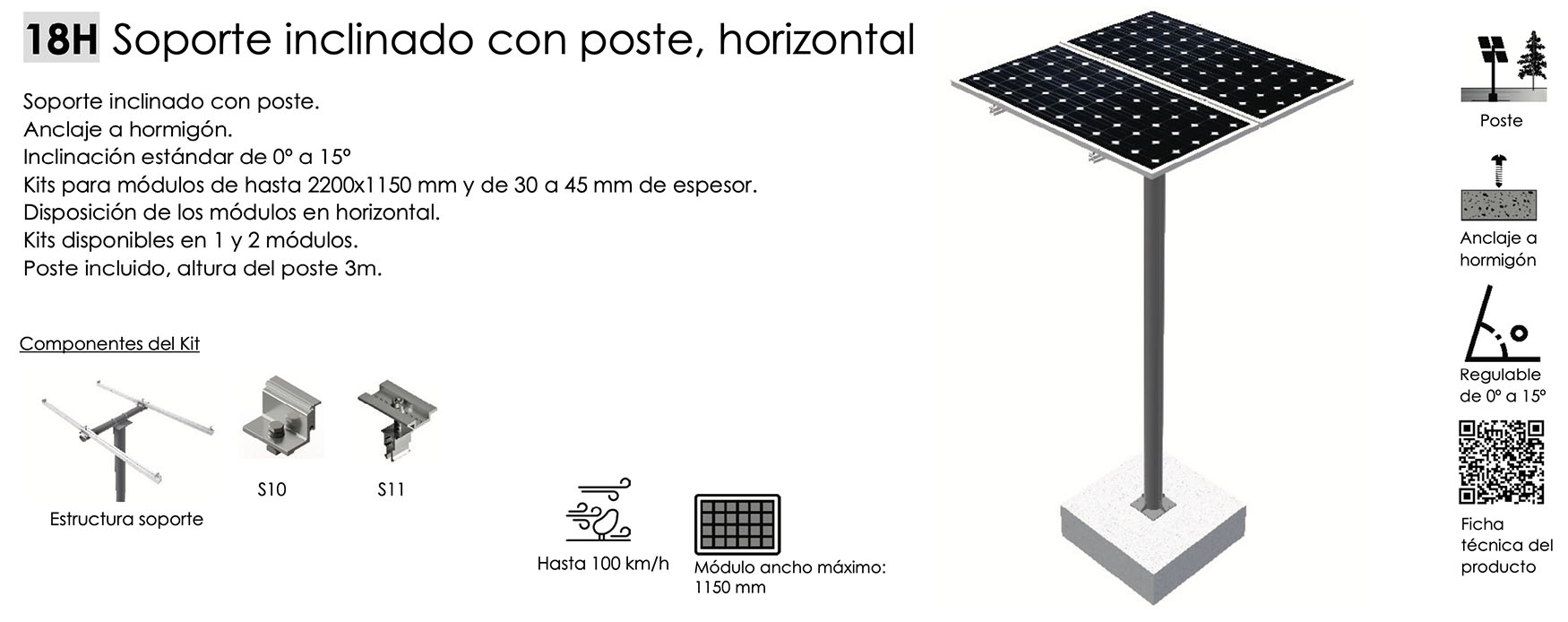 Estructura con Poste de 3 metros para 1 ó 2 Placas Solares de hasta 72 Células 18H
