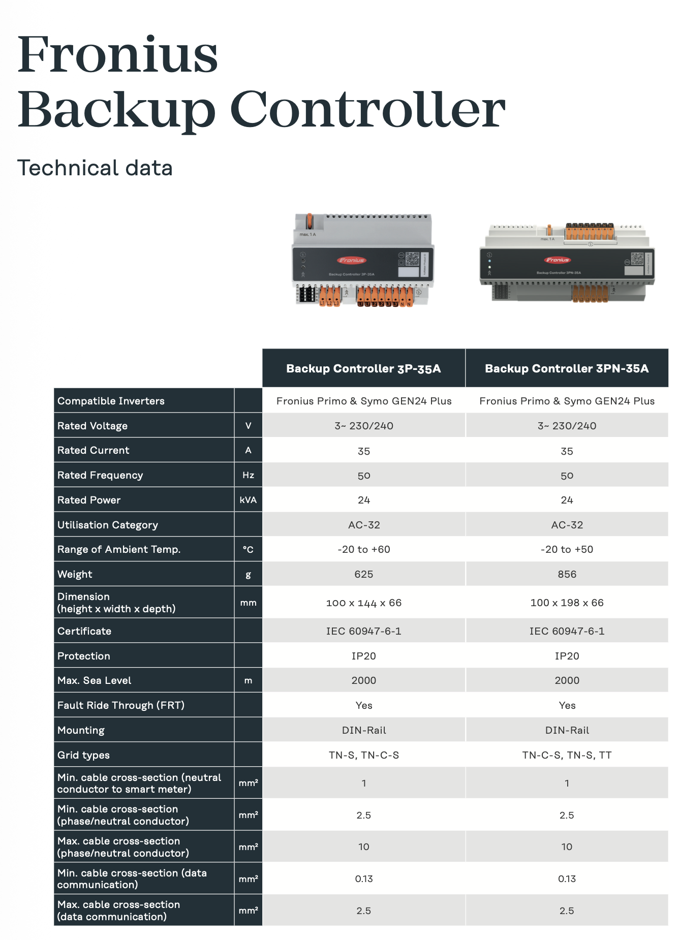 Controlador para la activación del full backup de forma automatica en instalaciones 1Ph y 3 Ph con inversores GEN24 Plus. Hasta 35A
