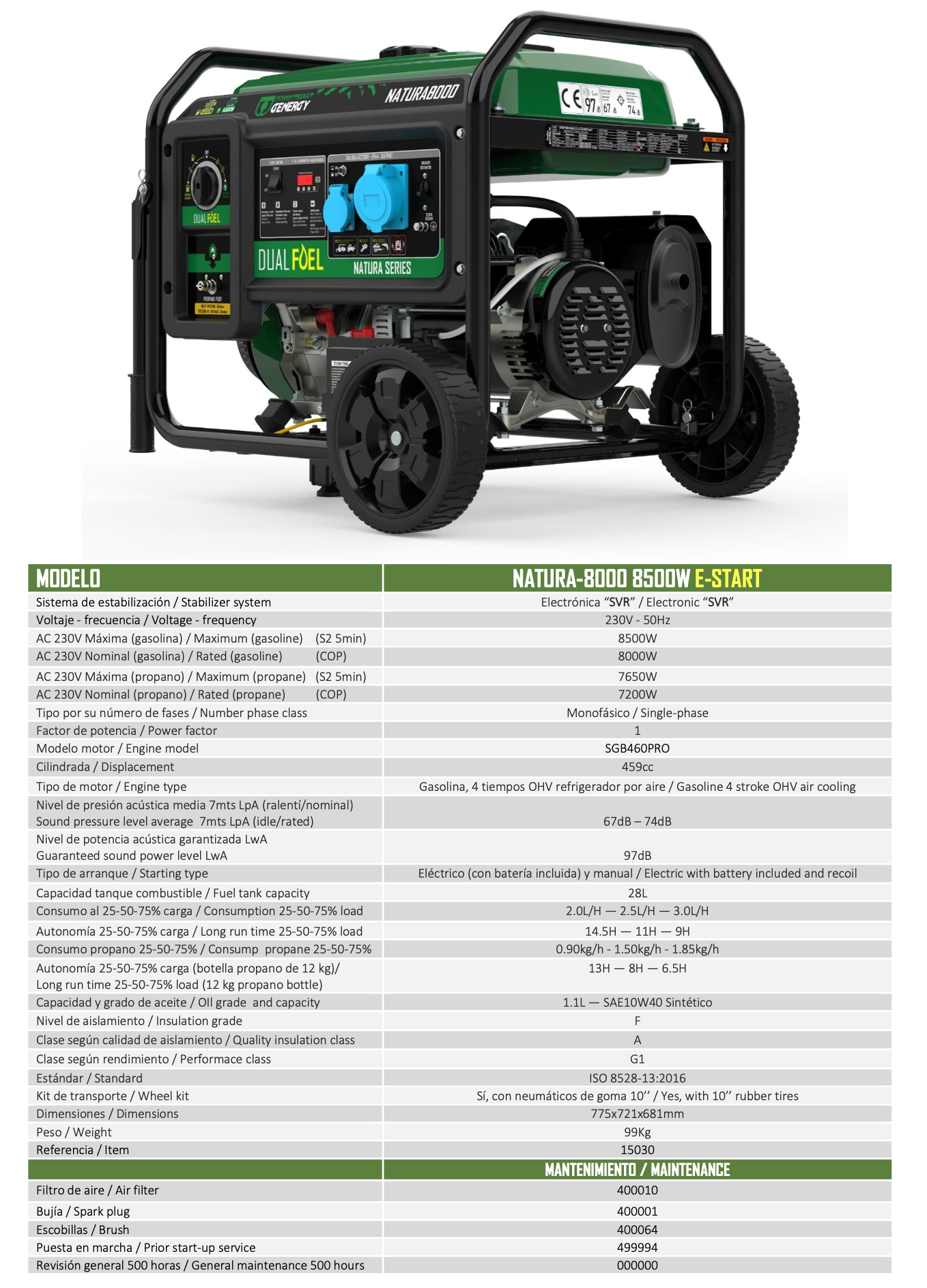 Generador Dual Propano Gasolina Natura 8000 8500W