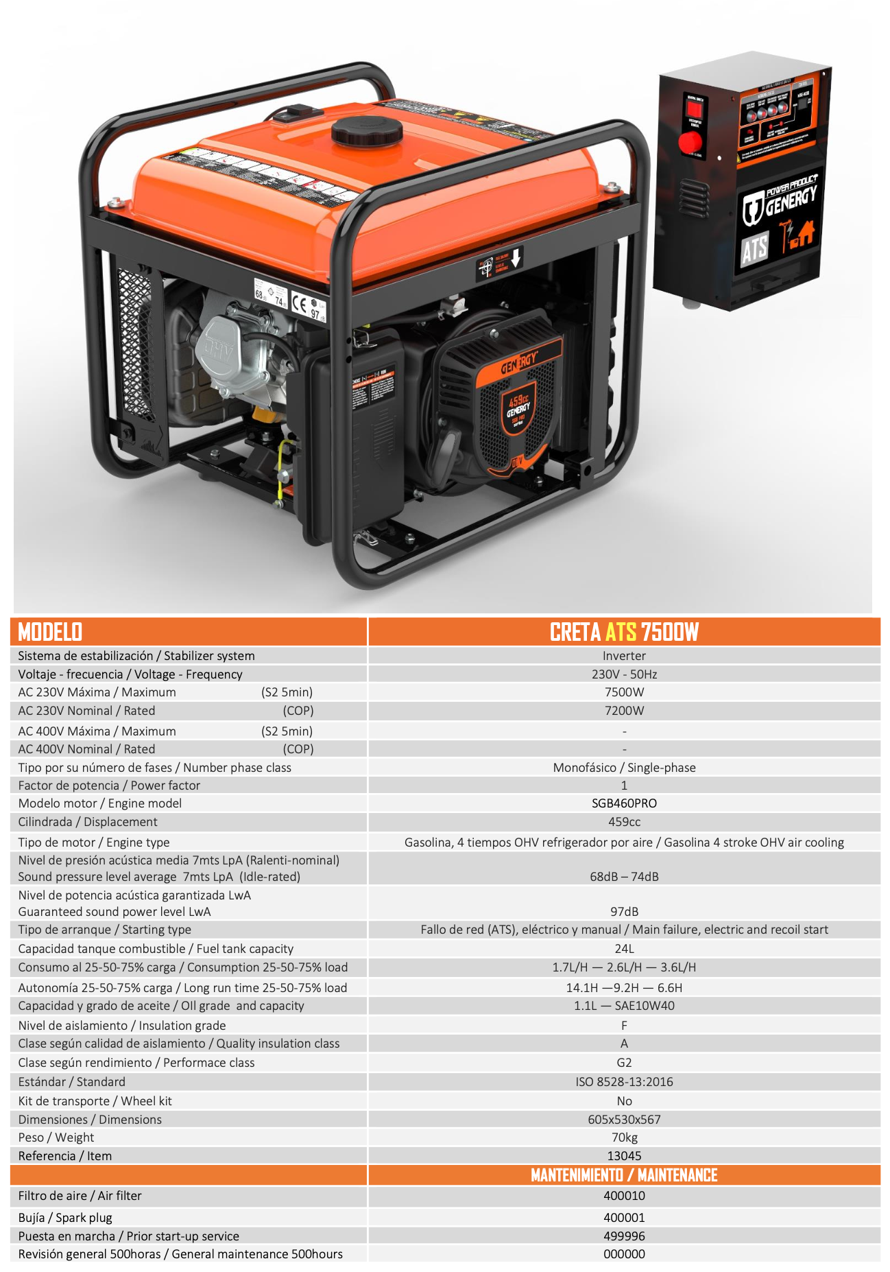 Generador fallo de red Genergy Creta ATS 7500W Inverter.