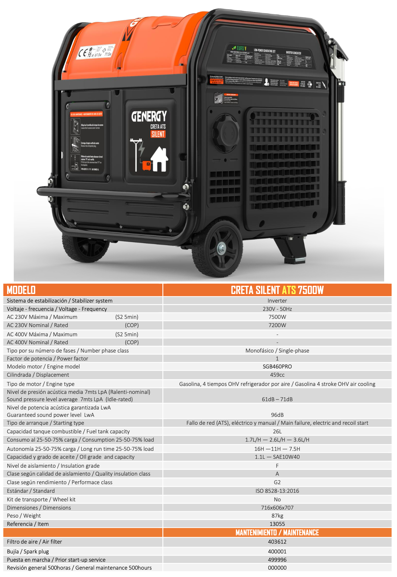 Generador fallo de red Genergy Creta SILENT ATS 7500W Inverter.