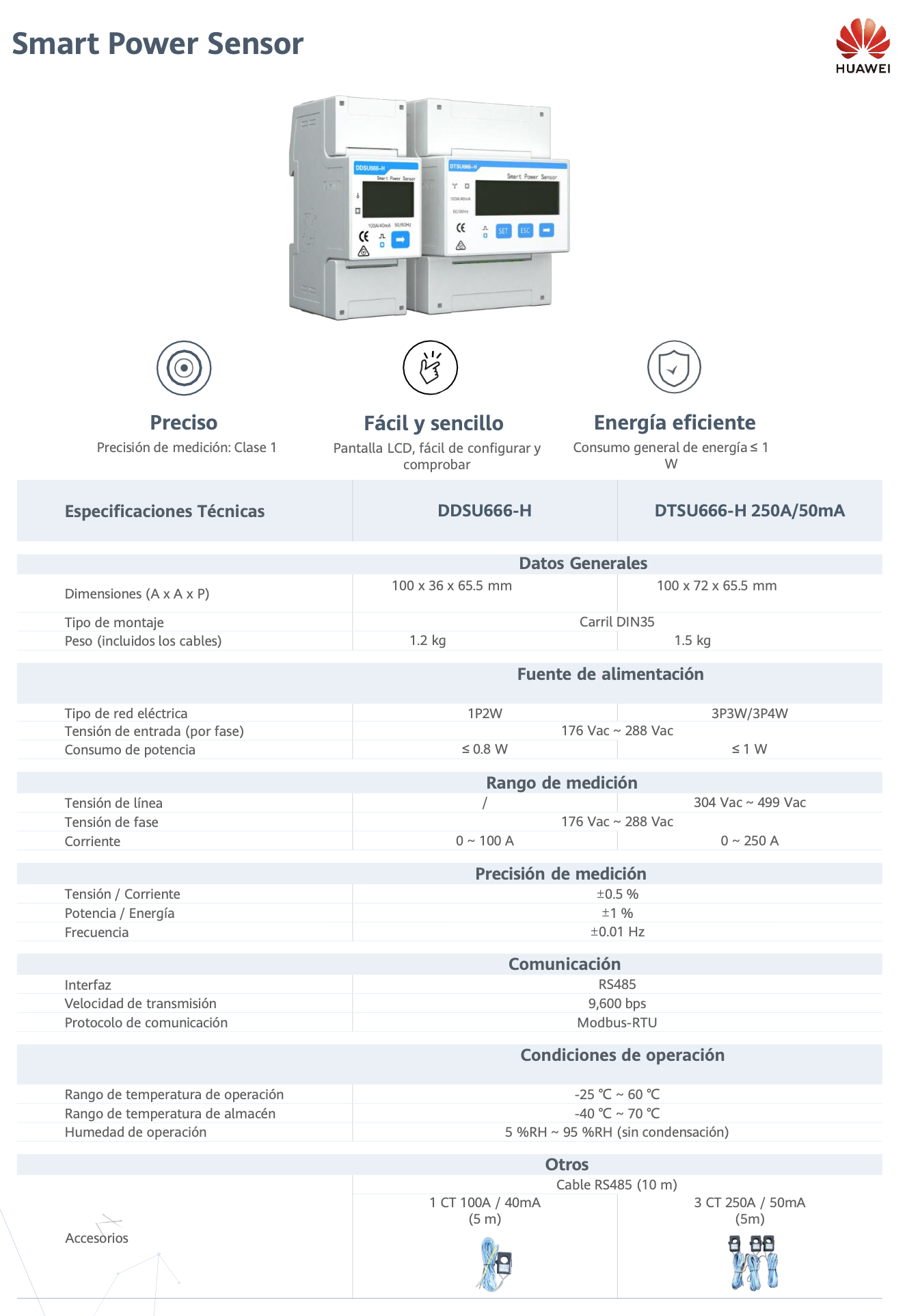 El Huawei Smart Power Sensor DDSU666-H es un sensor monofásico para instalaciones solares fotovoltaicas de Autoconsumo. Su función es medir el consumo general de la instalación.