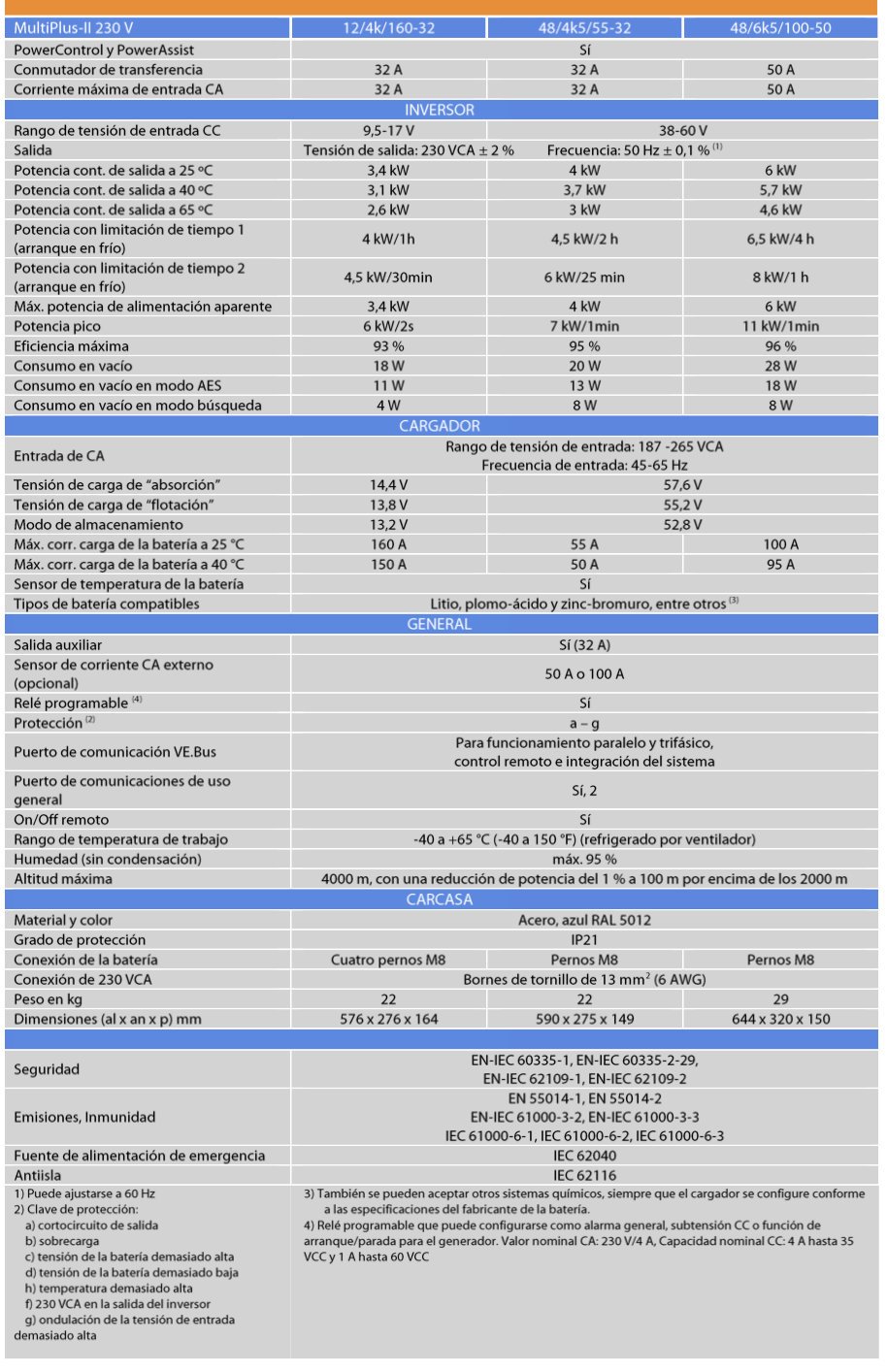 Inversor Cargador Victron Energy MultiPlus-II 12/4k/160-32. Nuevos modelos : más potencia por kg y por dm³, y mejor rendimiento con temperaturas altas