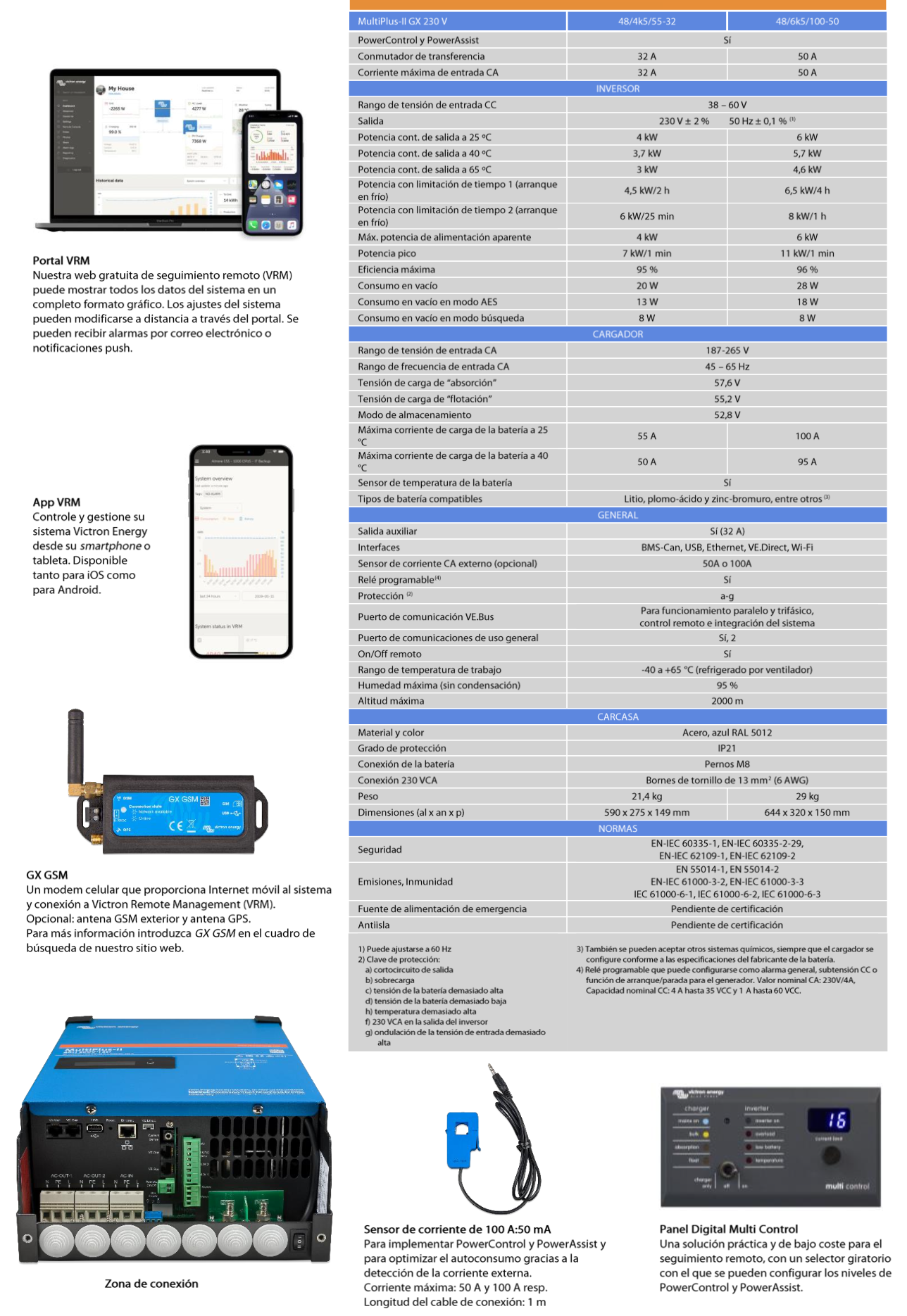 Inversor Cargador Victron Energy MultiPlus-II 48/6k5/100-50 GX. Nuevos modelos : más potencia por kg y por dm³, y mejor rendimiento con temperaturas altas