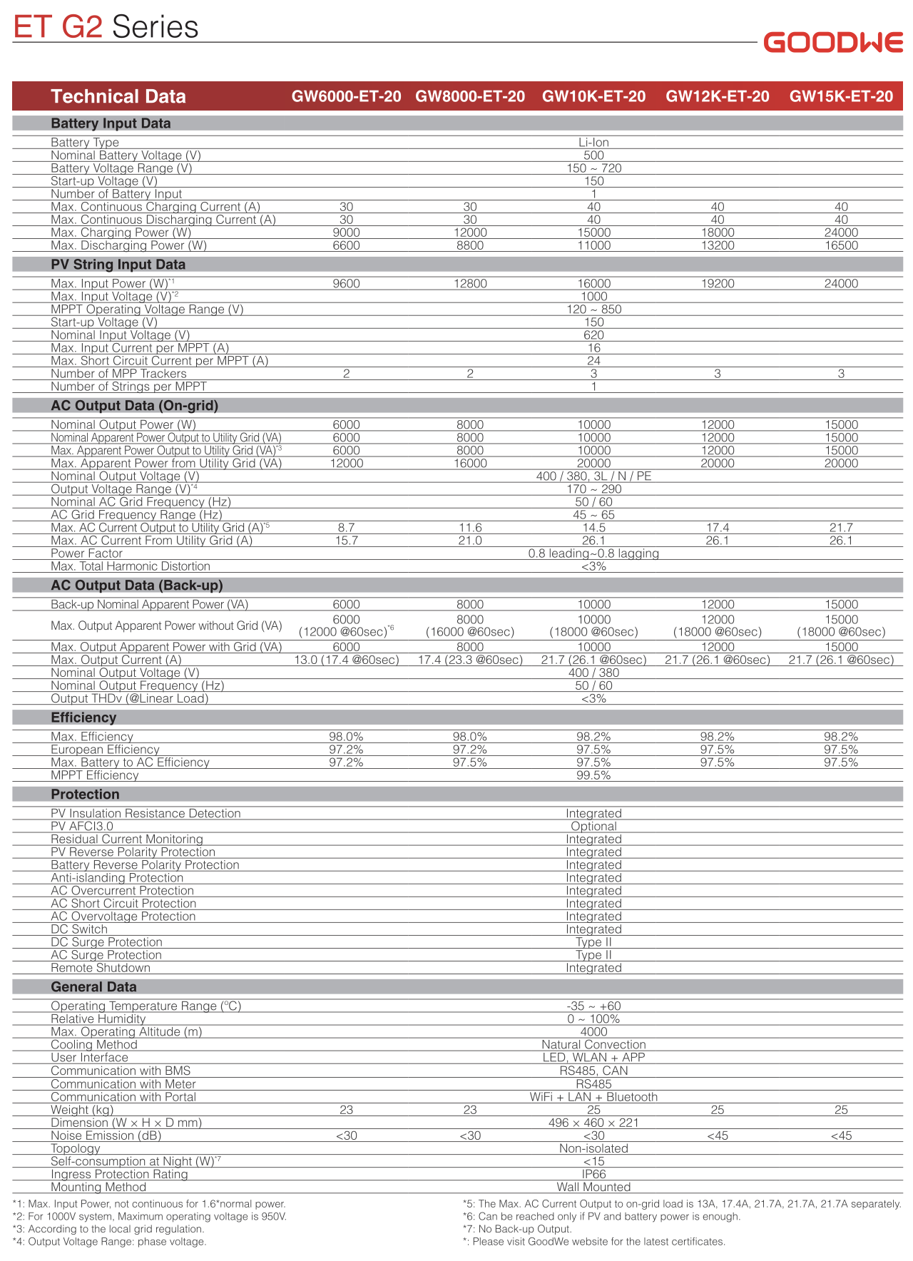 Inversor Híbrido Trifásico GoodWe GW10K ET G2 10kW | Salida máxima de 10000 VA CA | Función de backup | 5 años de garantía