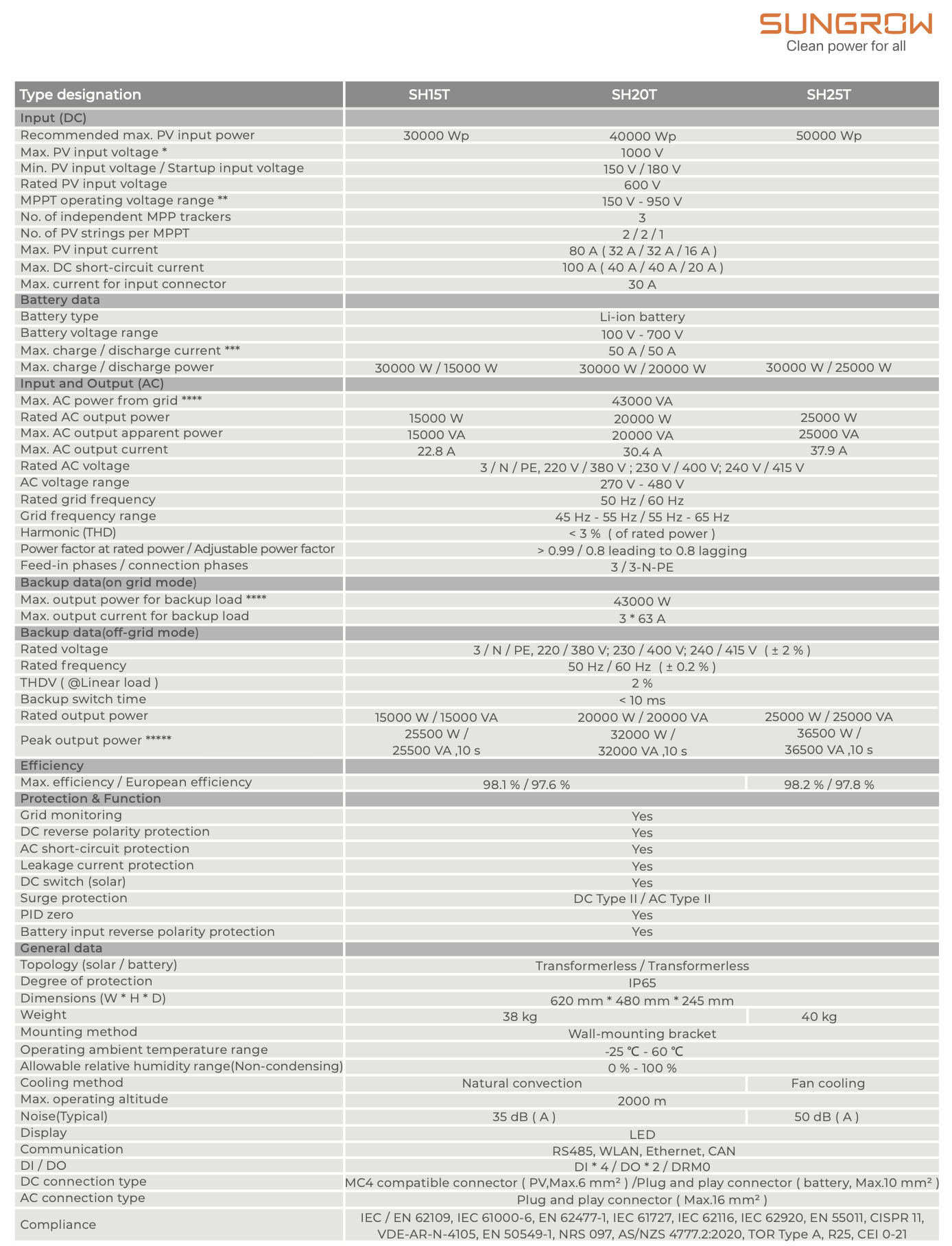 Inversor híbrido trifásico SUNGROW SH20T-V11 20kW