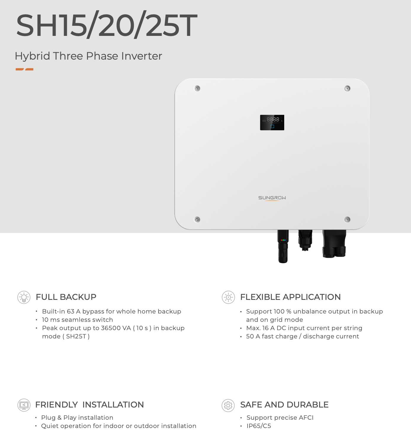 Inversor híbrido trifásico SUNGROW SH20T-V11 (AFCI) de 20kW