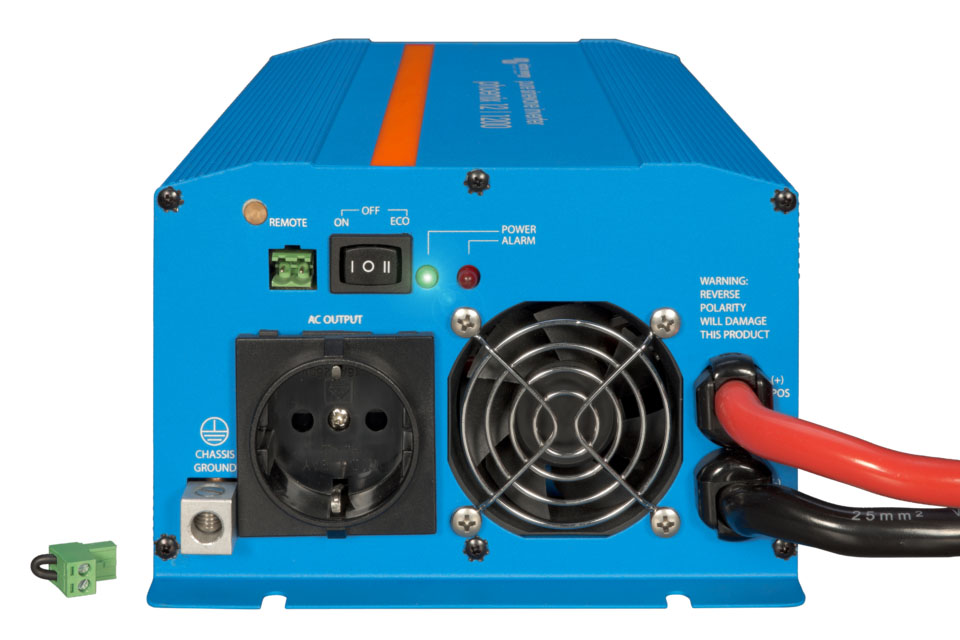 Inversor Onda Sinusoidal Pura Phoenix 12v 1200VA VE.Direct. Desarrollados para un uso profesional, los inversores Phoenix son perfectamente adecuados para multitud de aplicaciones distintas. Estos inversores de onda senoidal pura y de alto rendimiento han sido diseñados para ofrecer la máxima eficacia. La tecnología híbrida/de alta frecuencia proporciona unas características excepcionales con unas dimensiones y un peso reducidos, y garantiza una compatibilidad total con todos los aparatos conectados.
