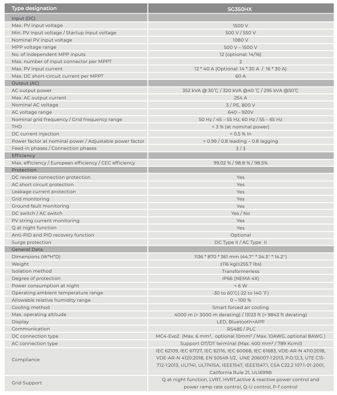 Inversor Trifásico SUNGROW SG350HX-V134 350kW