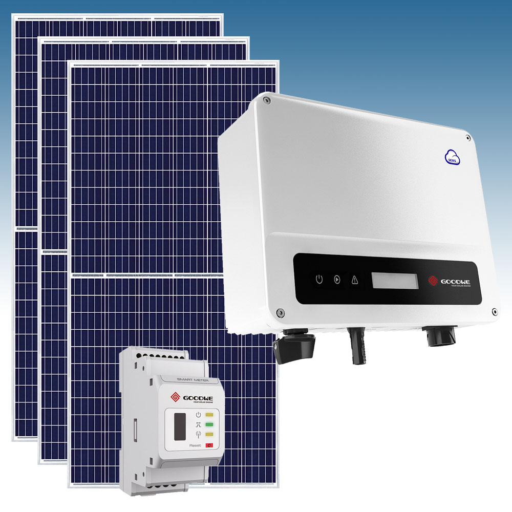 Kit Solar de Autoconsumo Directo de 1300Wp con 3 placas de 400Wp, Inversor de Conexión a Red GoodWe GW1500-XS 1500W monofásico.