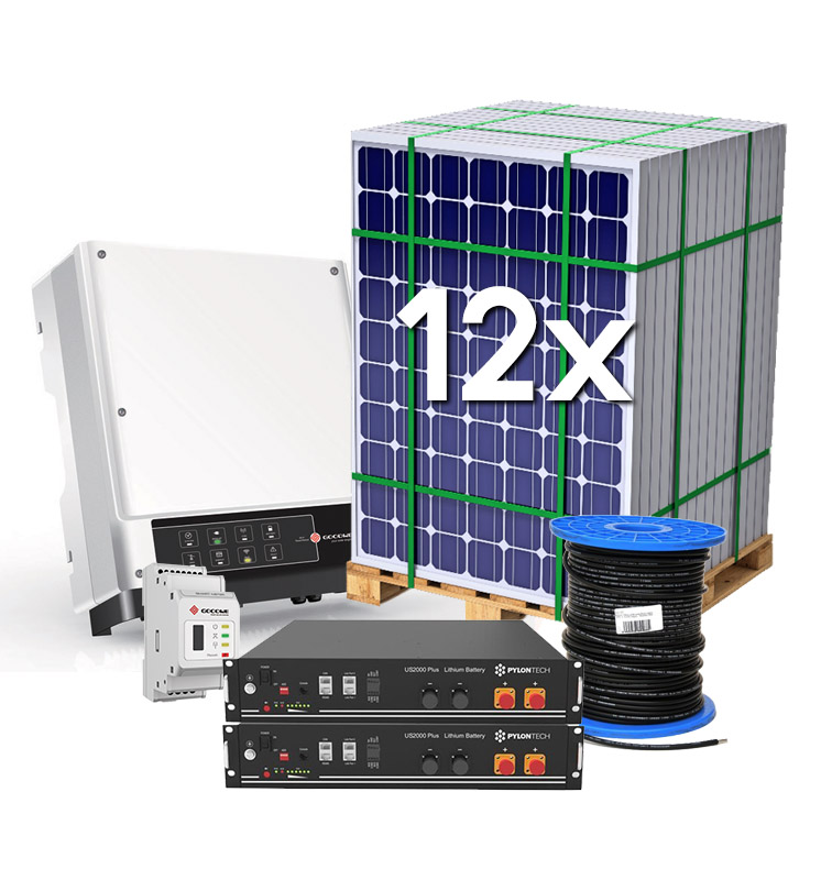 Kit Solar Fotovoltaico de 3000Wp para Autoconsumo Instantáneo e Inyección 0 a la red eléctrica con acumulación en Baterías de Litio Pylontech 4,8kWh.