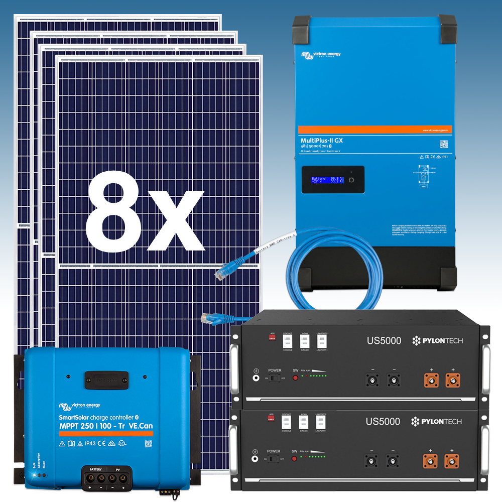 Kit Solar Fotovoltaico 12 kWh/dia con 2 baterías de LITIO Pylontech US5000C 4,8 kWh 48V e Inversor Cargador Victron Energy MultiPlus-II 48/5000/70-50 230V GX