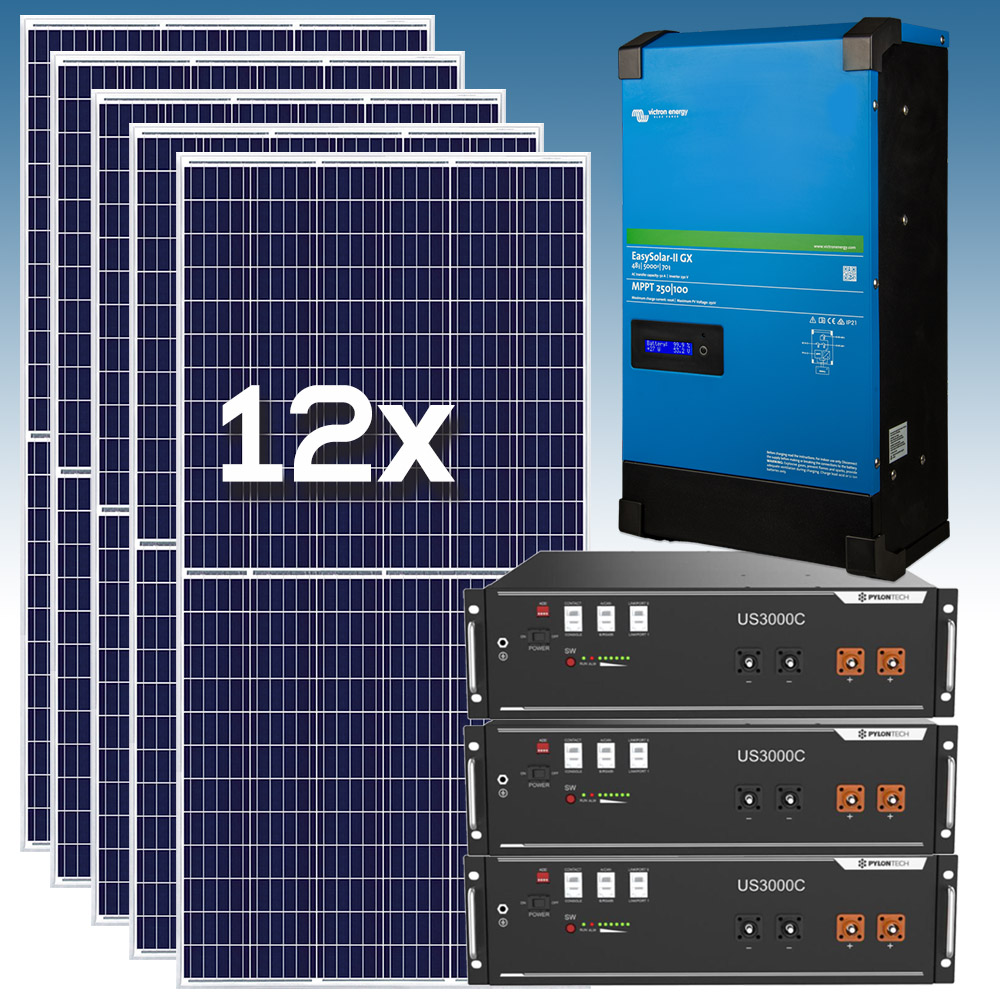 Kit Solar Fotovoltaico 14 kWh/dia con baterías de LITIO 10.5 kWh e Inversor Cargador Victron Energy EasySolar-II 48/5000/70-50 con regulador MPPT 250/100 GX