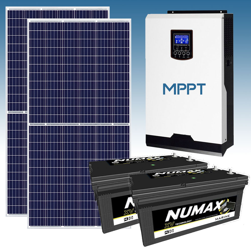 Kit Solar Fotovoltaico 3000Wh/dia con Inversor de 3000W 24V MPPT con baterías selladas sin mantemiento Numax de 260Ah
