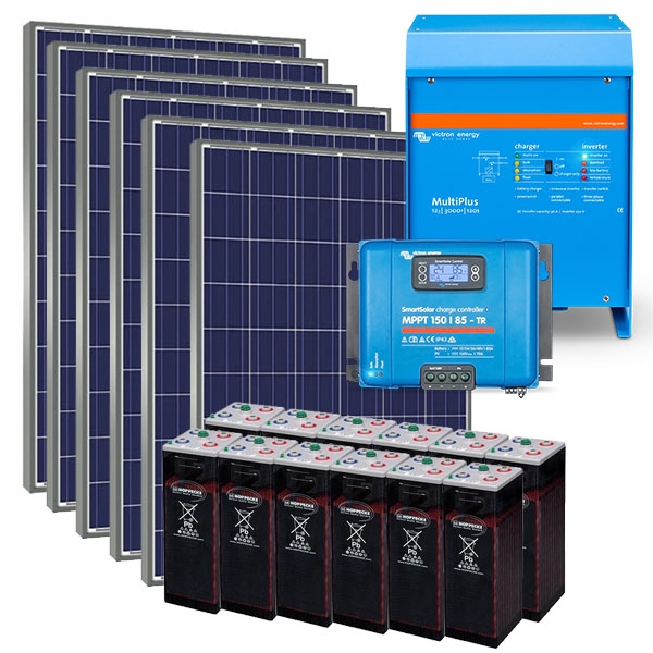 Kit solar fotovoltaico para medianos consumos y uso diario como vivienda habitual. Diseñado con componentes de alta calidad y primeras marcas, como Victron Energy y Hoppecke Batteries, el Kit Solar 7 kWh/dia PREMIUM de Teknosolar te proporciona energía suficiente para cubrir tus necesidades MEDIAS de consumo.