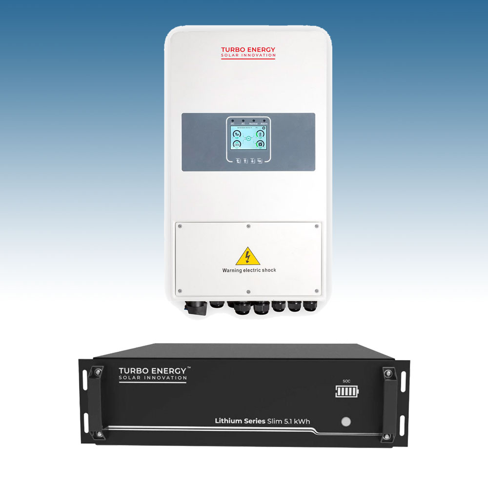 Pack Batería de litio Turbo Energy Lithium Series Slim 5,1 kWh 48V más Inversor Híbrido Turbo Energy Series Smart 5000W 48V con 2 strings MPPT