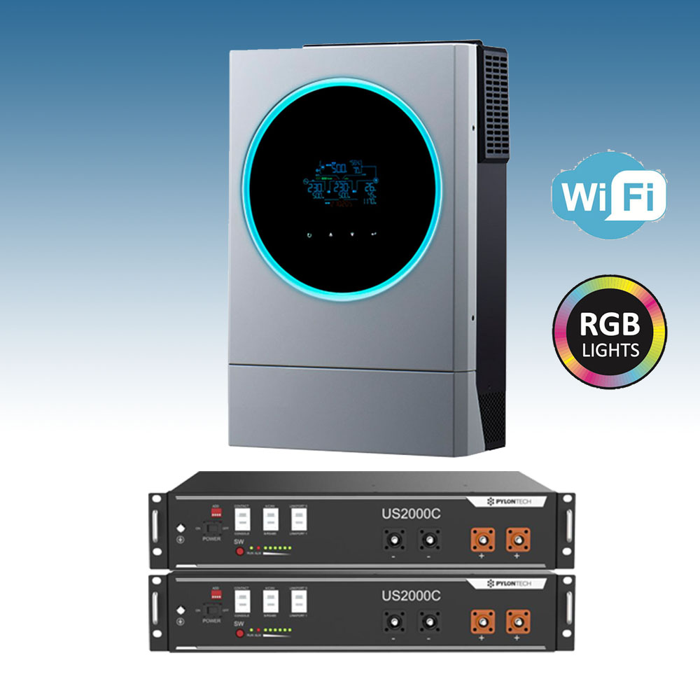 Pack 2 Baterías Pylontech US2000C 4,8kWh 48V más Inversor Cargador AXPERT MKS IV 5600W 48V con Regulador MPPT 120A 450V