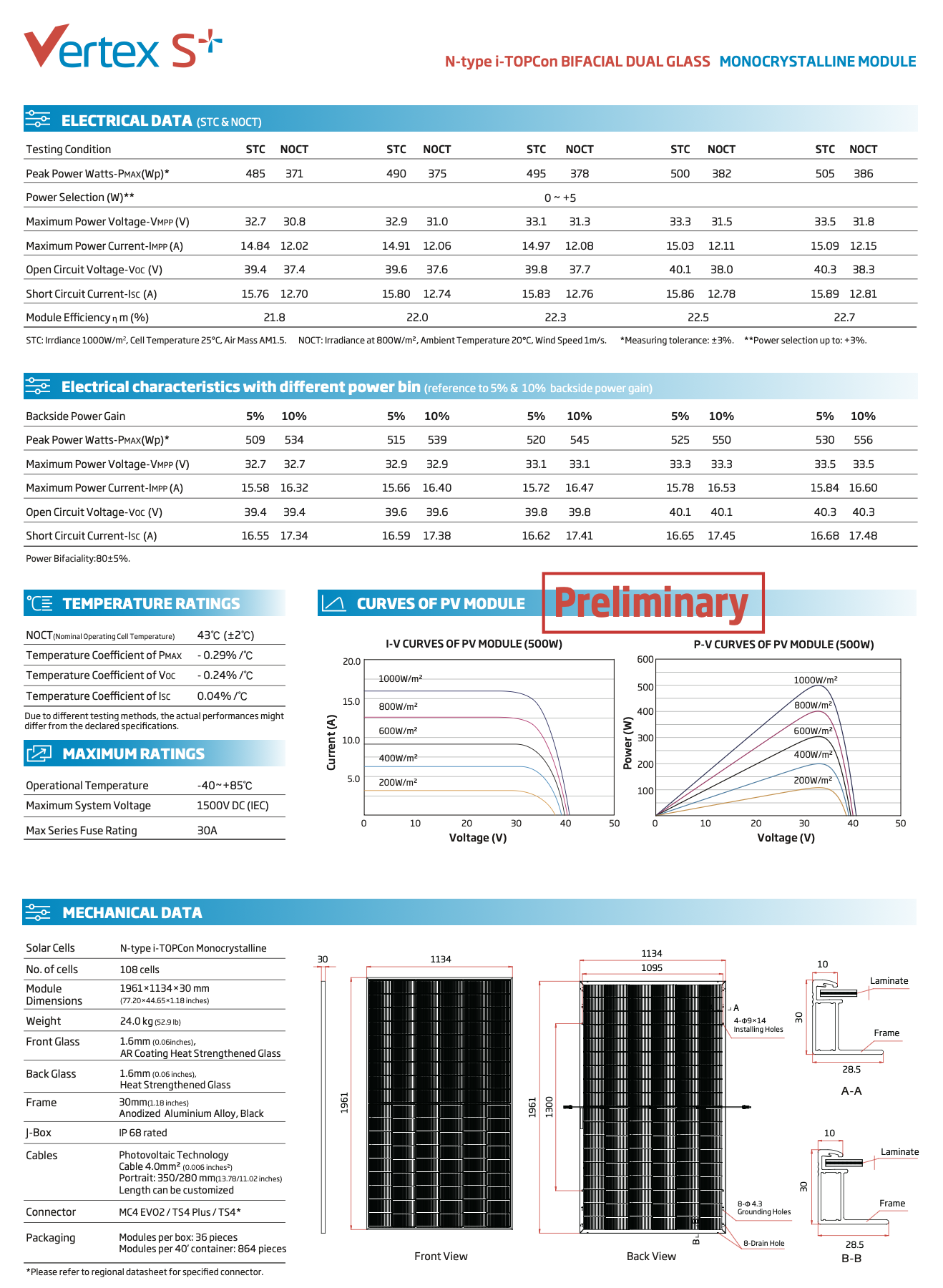 Placa Solar Trina Solar Vertex NEG18RC.27 Bifacial Transparent 505Wp