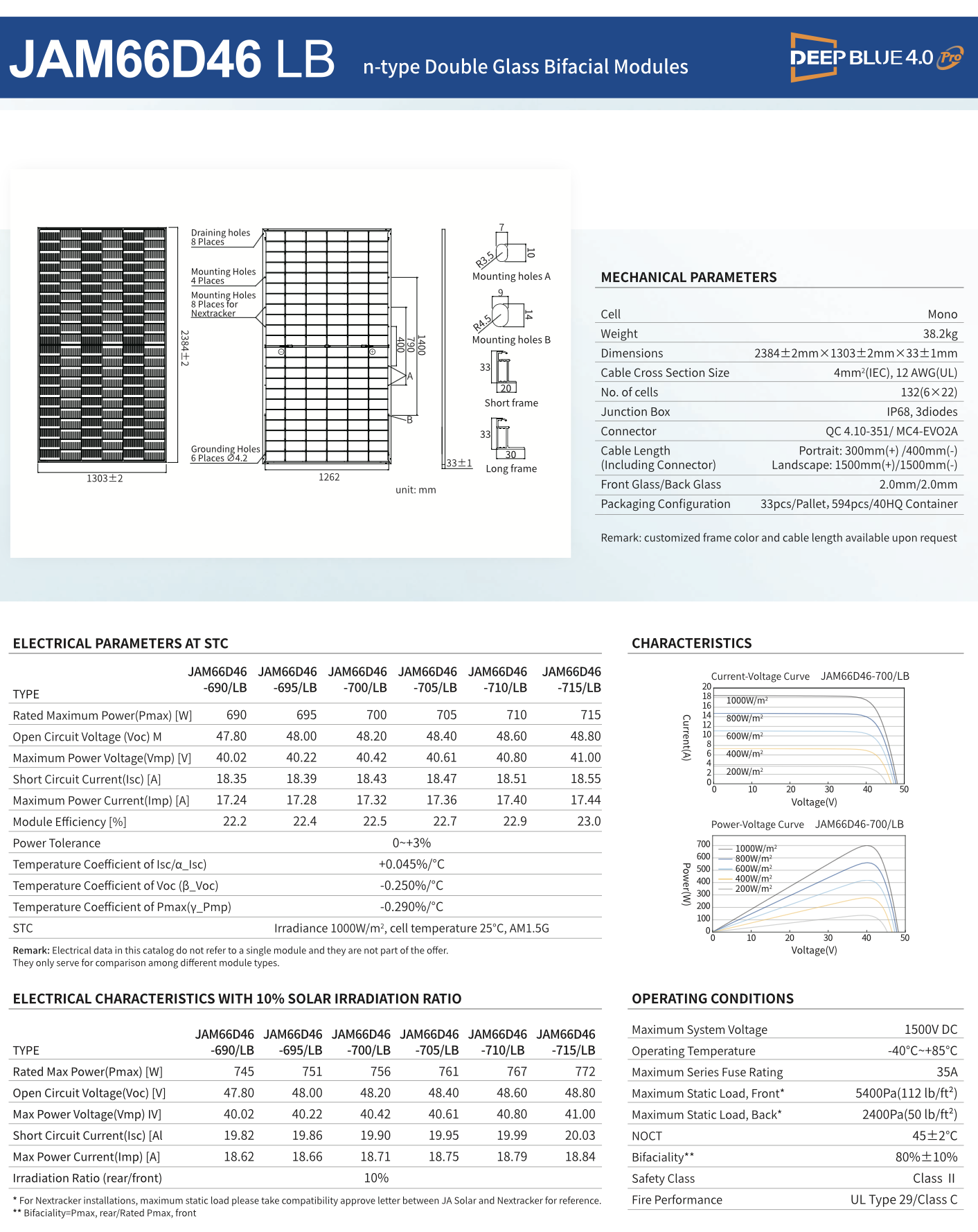 Placa Solar JA Solar JAM66D46 LB Bifacial 710Wp