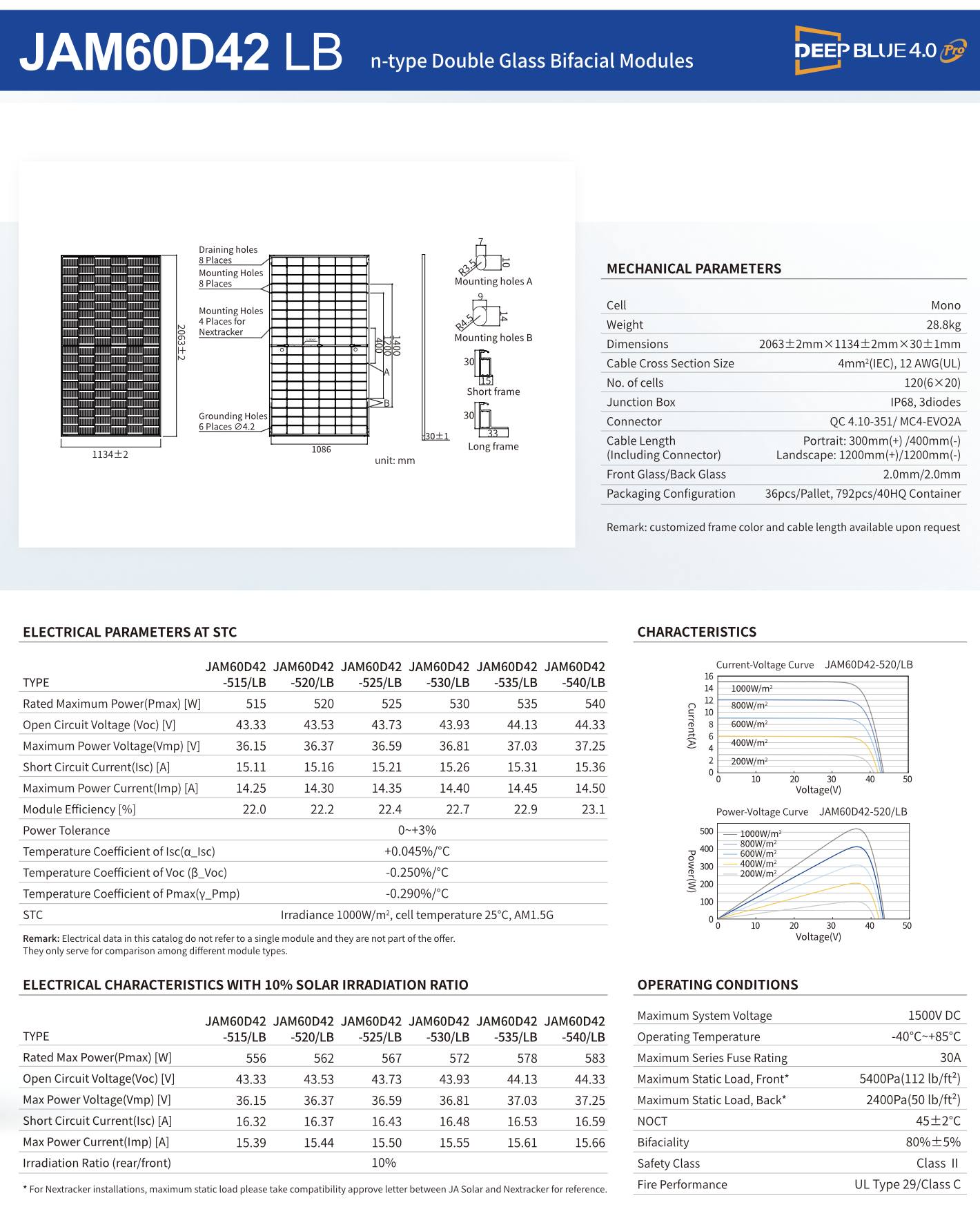 Placa Solar JA Solar JAM60D42 LB Bifacial 535Wp