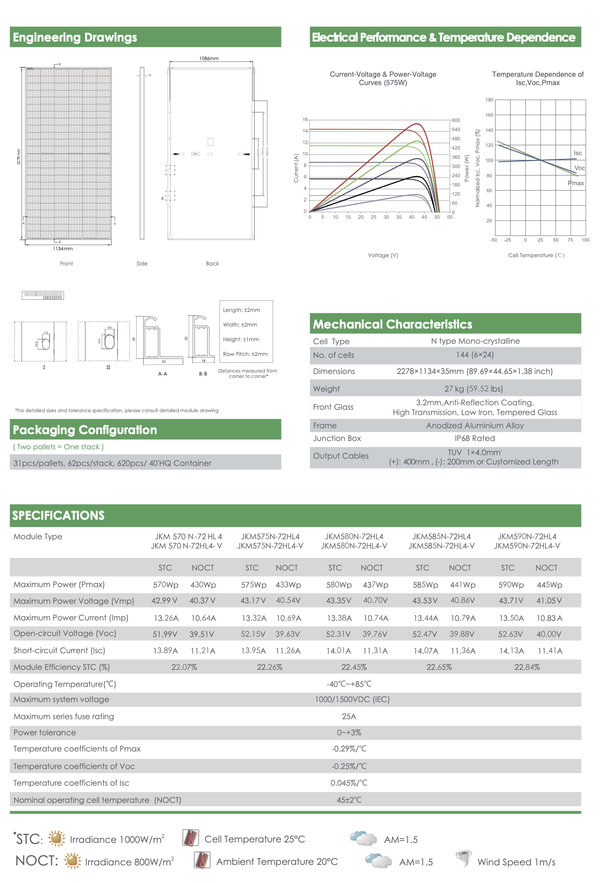 Placa Solar JINKO TIGER-NEO-72HL4-BDV Bifacial 585Wp