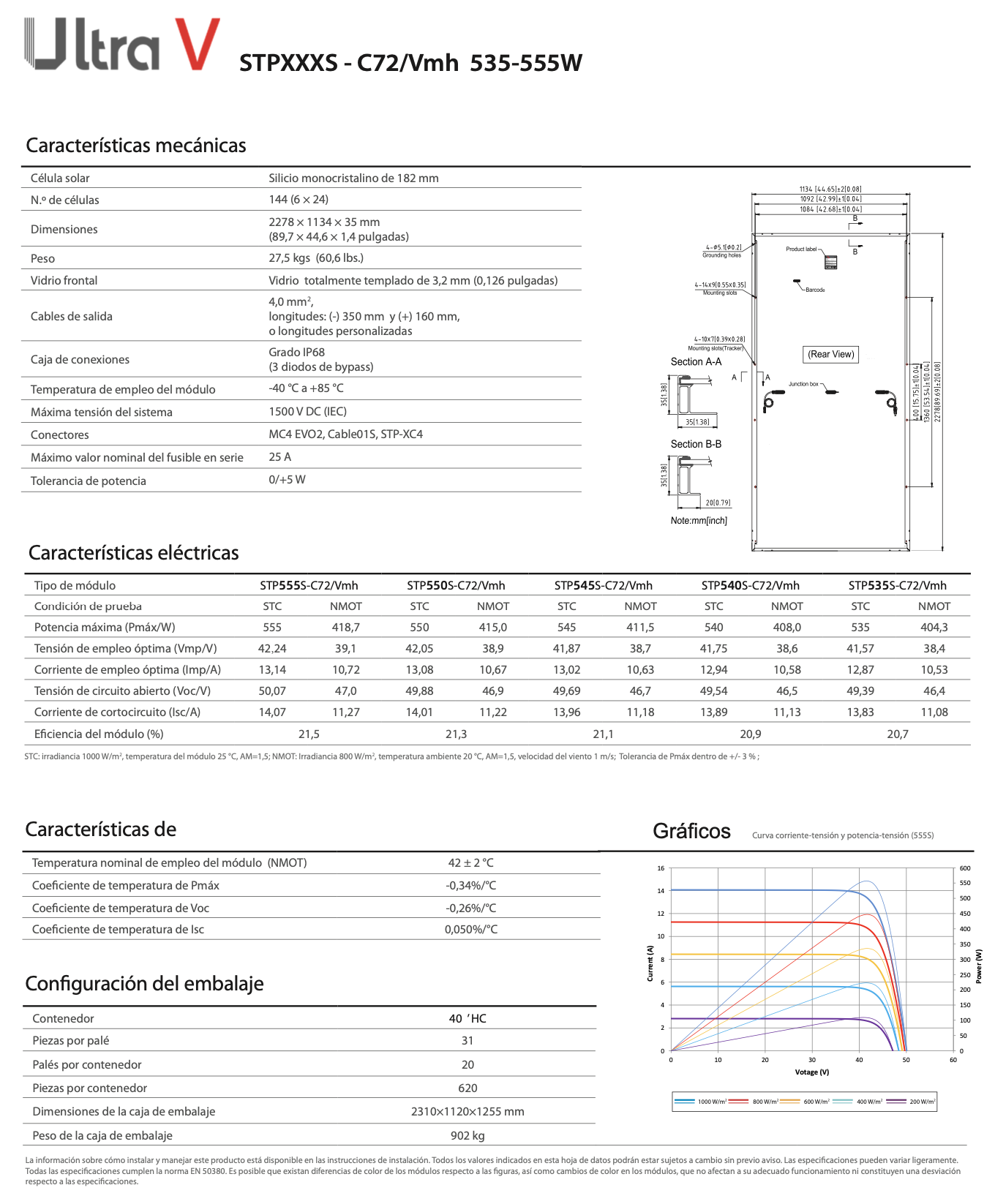 Placa Solar SUNTECH Ultra V Mono C72 550Wp.