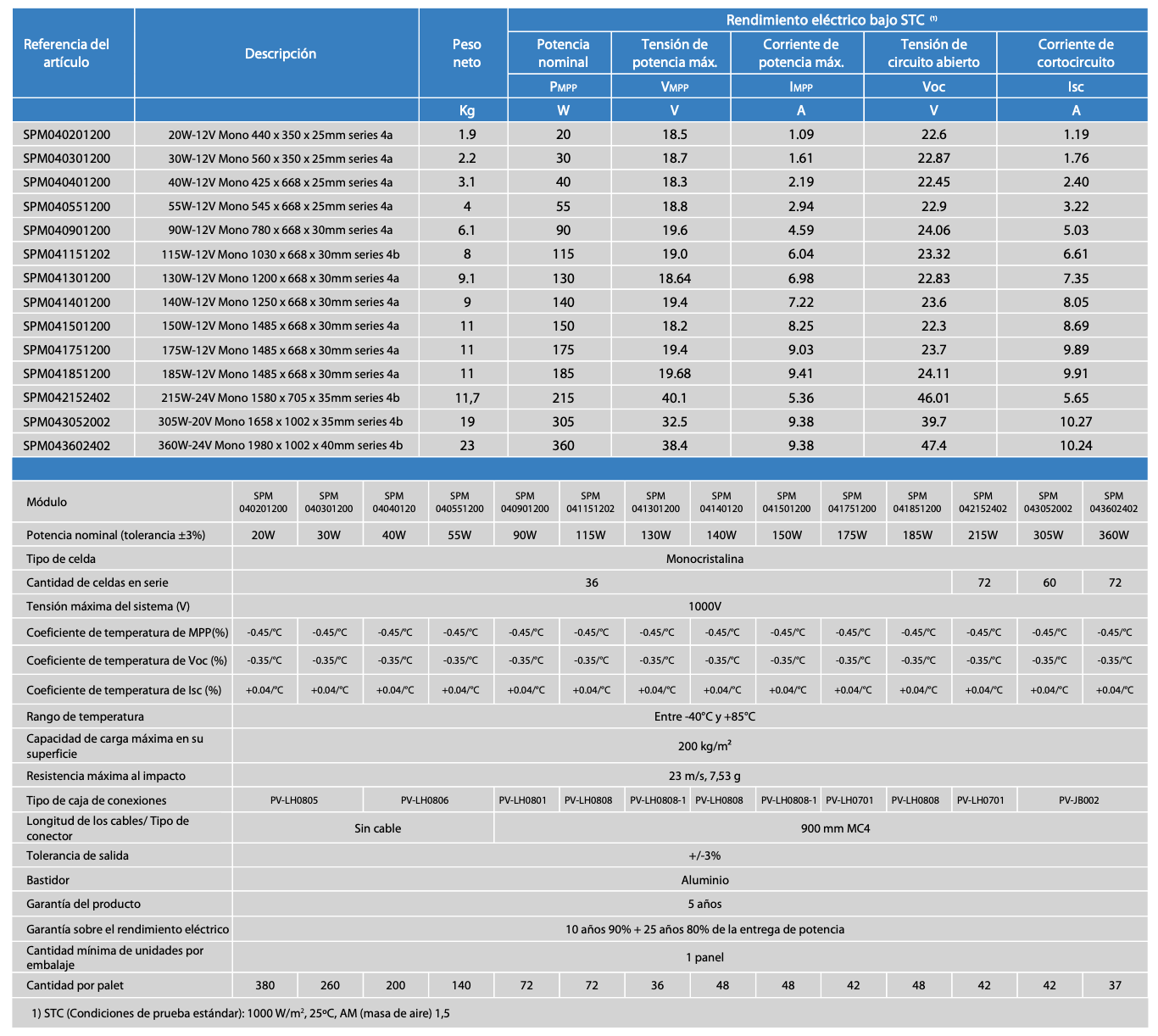- Garantía limitada de 25 años en la entrega de potencia y el rendimiento.