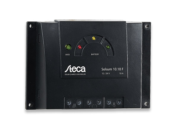 La línea Steca Solsum F continúa con el gran éxito de uno de los reguladores de carga más utilizado en los sistemas Solar Home. Es especialmente adecuada para la aplicación de sistemas con una potencia de hasta 240 W con un rango de potencia de hasta 10 A y con una conmutación automática de 12 V o 24 V.