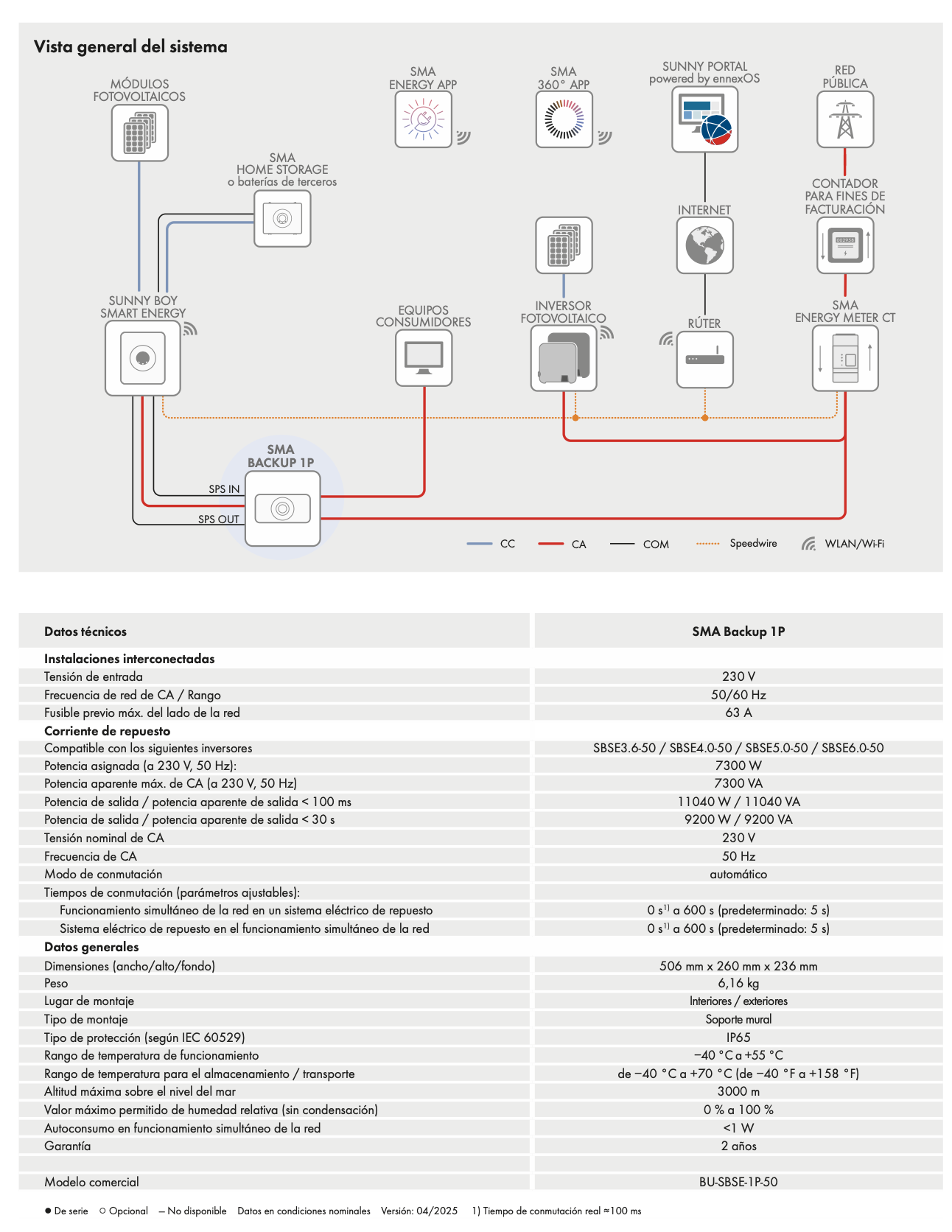 mática permite conmutar suavemente entre el funcionamiento de la corriente de red y de repuesto, y puede ajustarse a tiempos de conmutación de entre 0 s y 600 s. Esto garantiza un suministro energético integral para el hogar con alto rendimiento y funcionamiento fiable. Sobre todo en combinación con una batería SMA