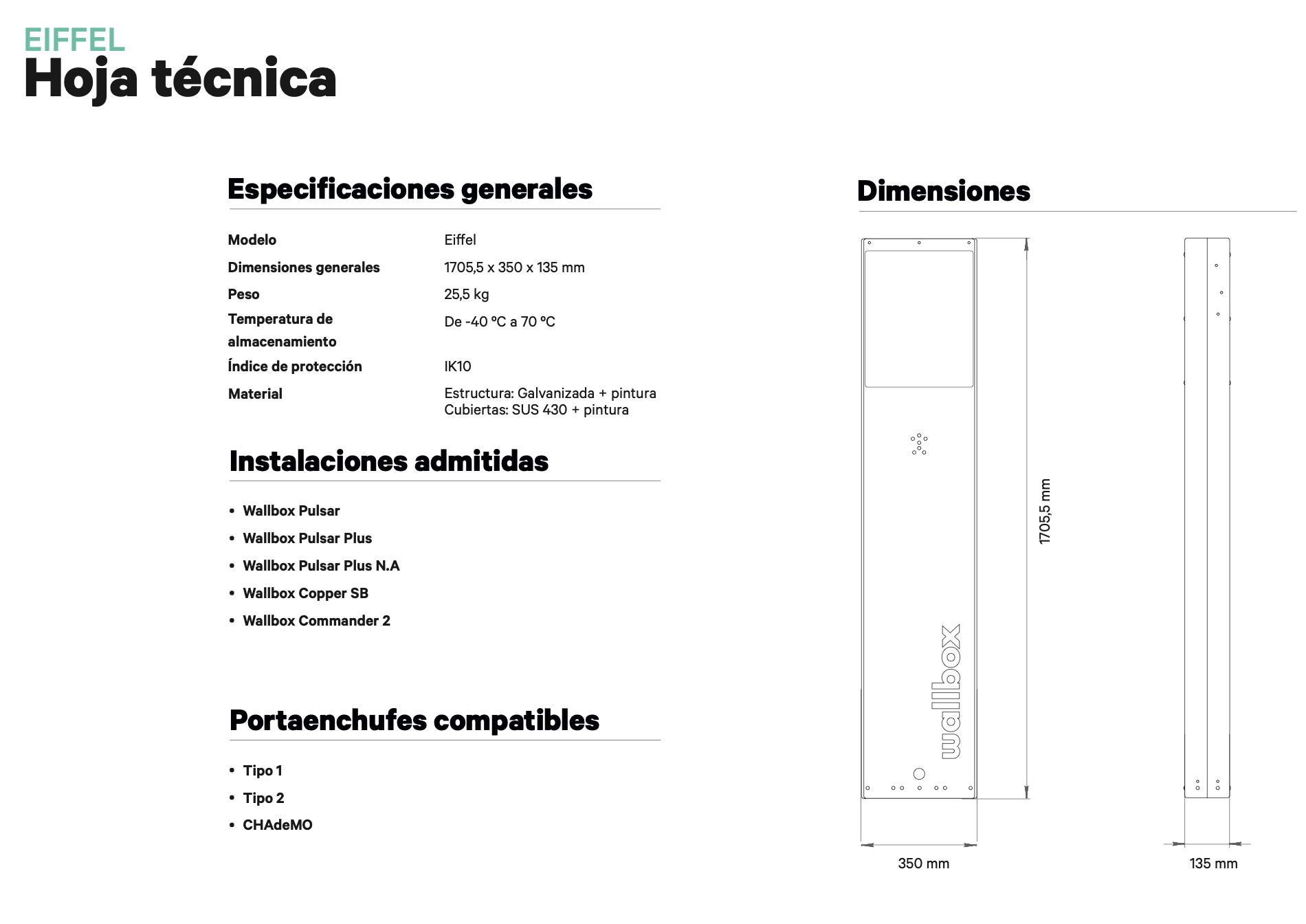 Wallbox PEDESTAL EIFFEL simple para PULSAR Family y COOPER SB